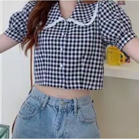 Korean Square Collar Crop Top 1214/baju atasan wanita terbaru(XS-XL)