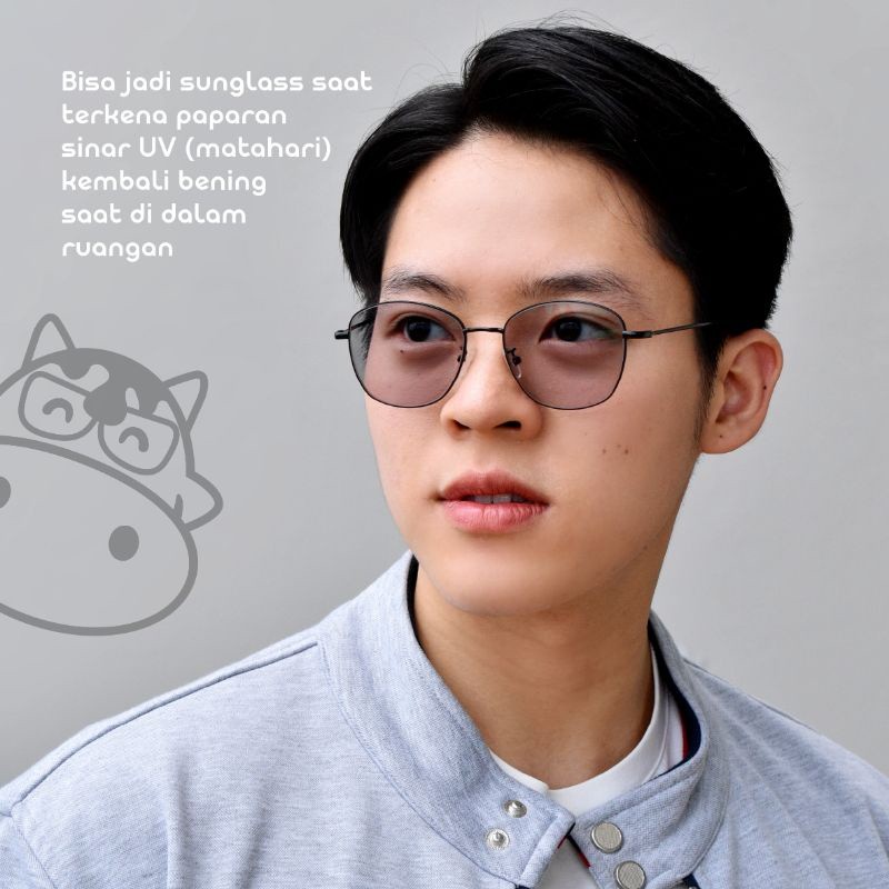 KACAMATAMOO Kacamata Photochromic – Lensa Berubah Gelap Saat Kena Sinar Matahari, Anti UV & Anti Radiasi