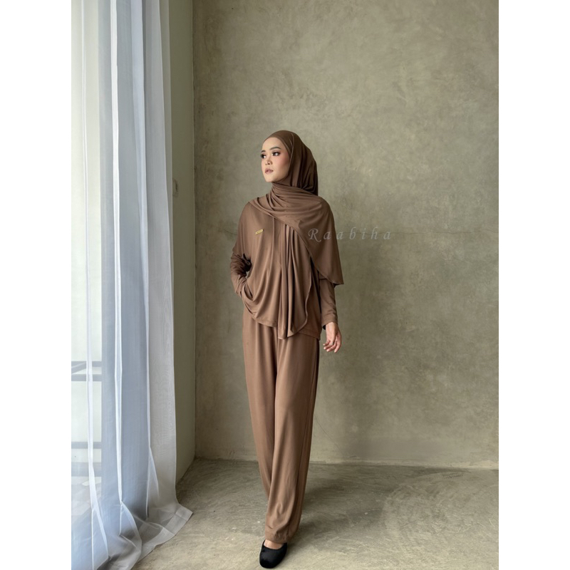 RAABIHA | Basic Nadine | Oneset Jersey Premium | Setelan Wanita Muslim Wudhu Friendly, Adem, Anti Kusut, Longgar & Elegan