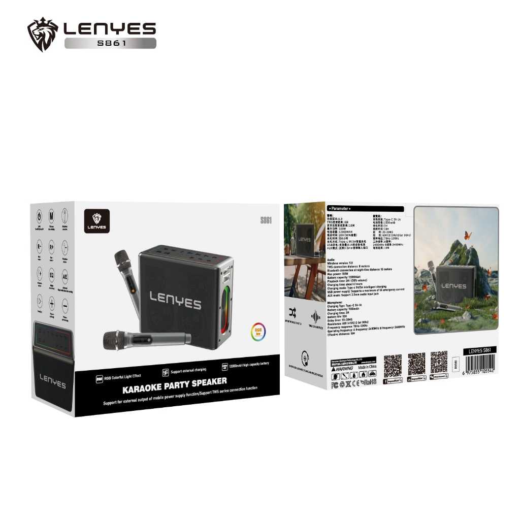LENYES S861 150W KTV RGB LED Light Wireless Speaker + Microphone Karaoke Bluetooth 5.0 Portable High Power