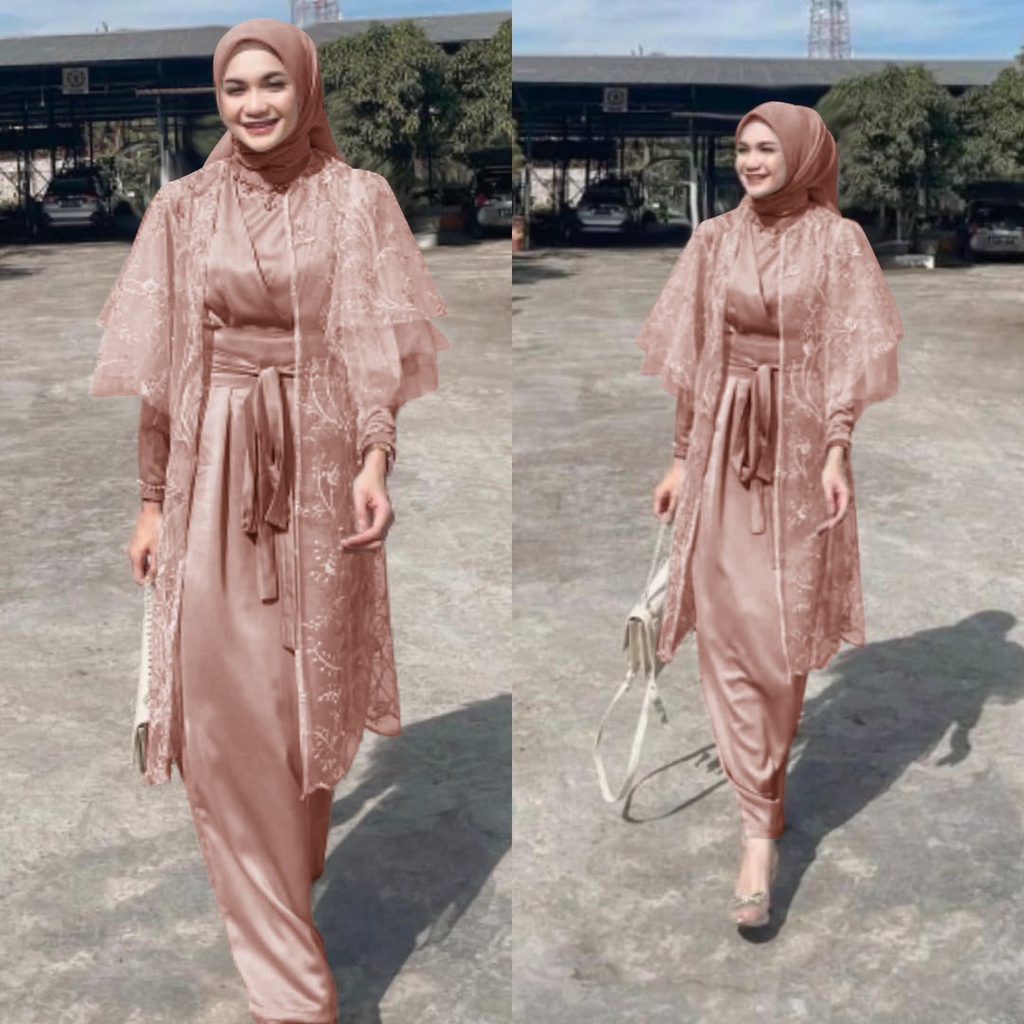 Felicio77 (lucianna) Gamis Brukat Set Outer Premium Oufit Seragam Lebaran