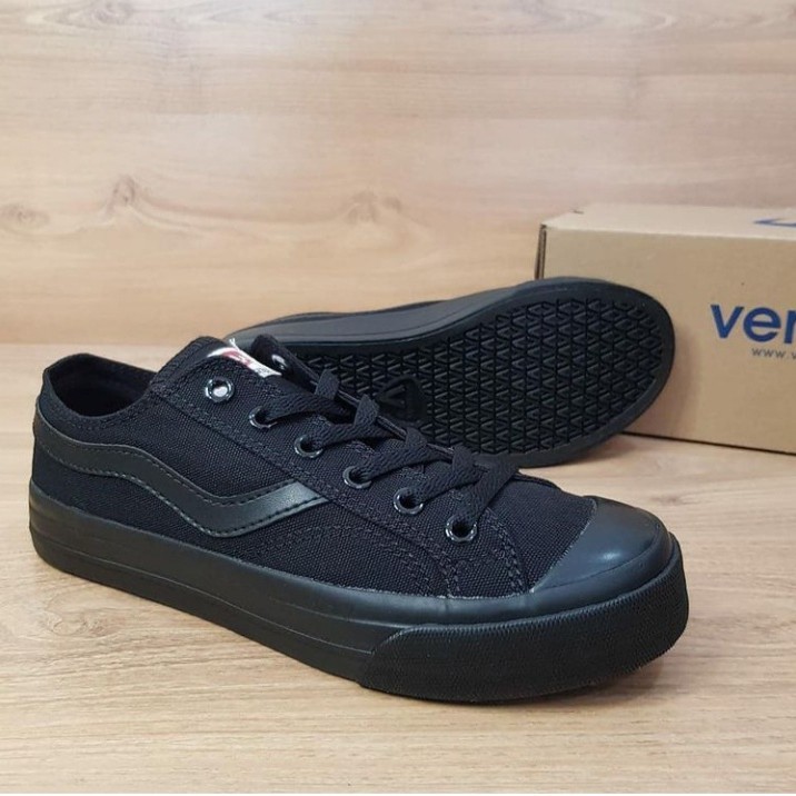 Sepatu Casual Sekolah Hitam Polos Ventela Publick Low All Black Sneakers Hitam Putih Pria Wanita