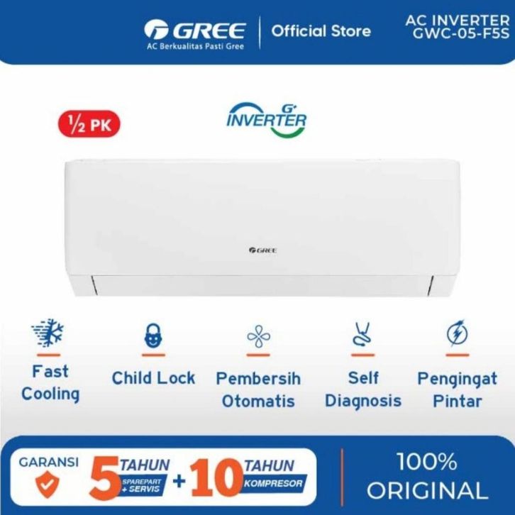 GREE AC INVERTER 0,5 PK GWC-05F5S Produk Berkualitas dan Original