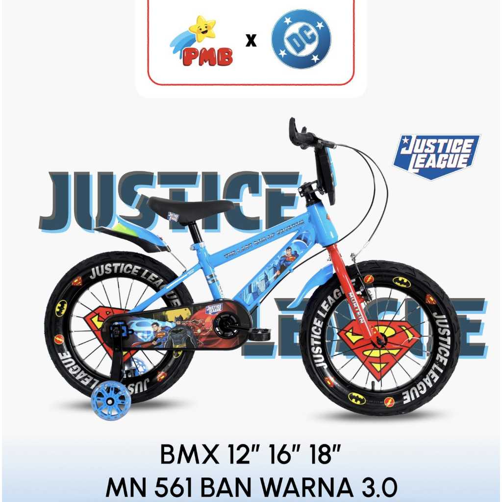 SEPEDA ANAK BMX LAKI LAKI PMB MORTEIN MN 561 JUSTICE LEAGUE / MN 211 ULTRAMAN 16 18 INCH ADA LAMPU DAN MUSIK