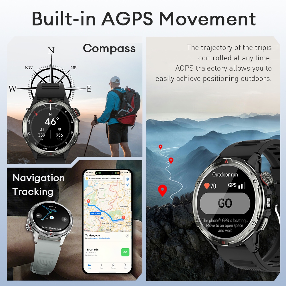 Aolon Tetra R4 Amoled Smartwatch Original AOD Running Pace Strava Waterproof 1ATM Compass 1.46'' Bulat 466466 Display C