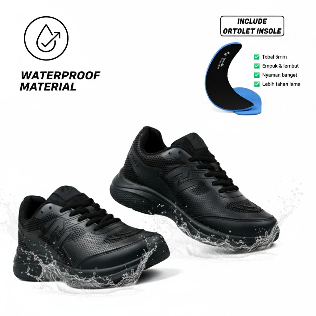 NEVIS Sepatu Sneakers Pria Wanita Raptor Waterproof Casual Sekolah Kerja Full Black Hitam