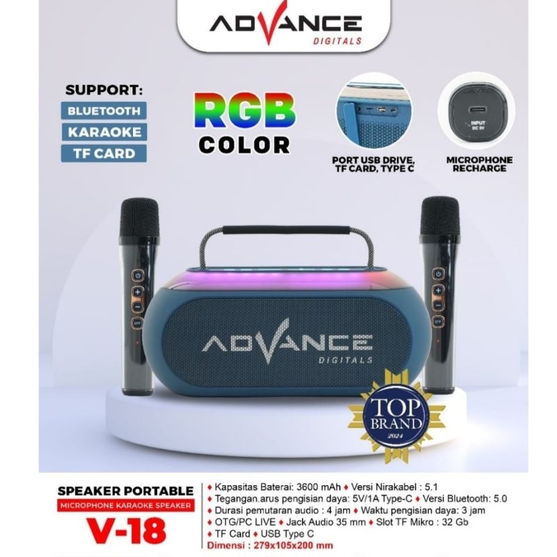 ADVANCE SPEAKER PORTABLE BLUETOOTH MINI KARAOKE BONUS MIXROPHONE V-18