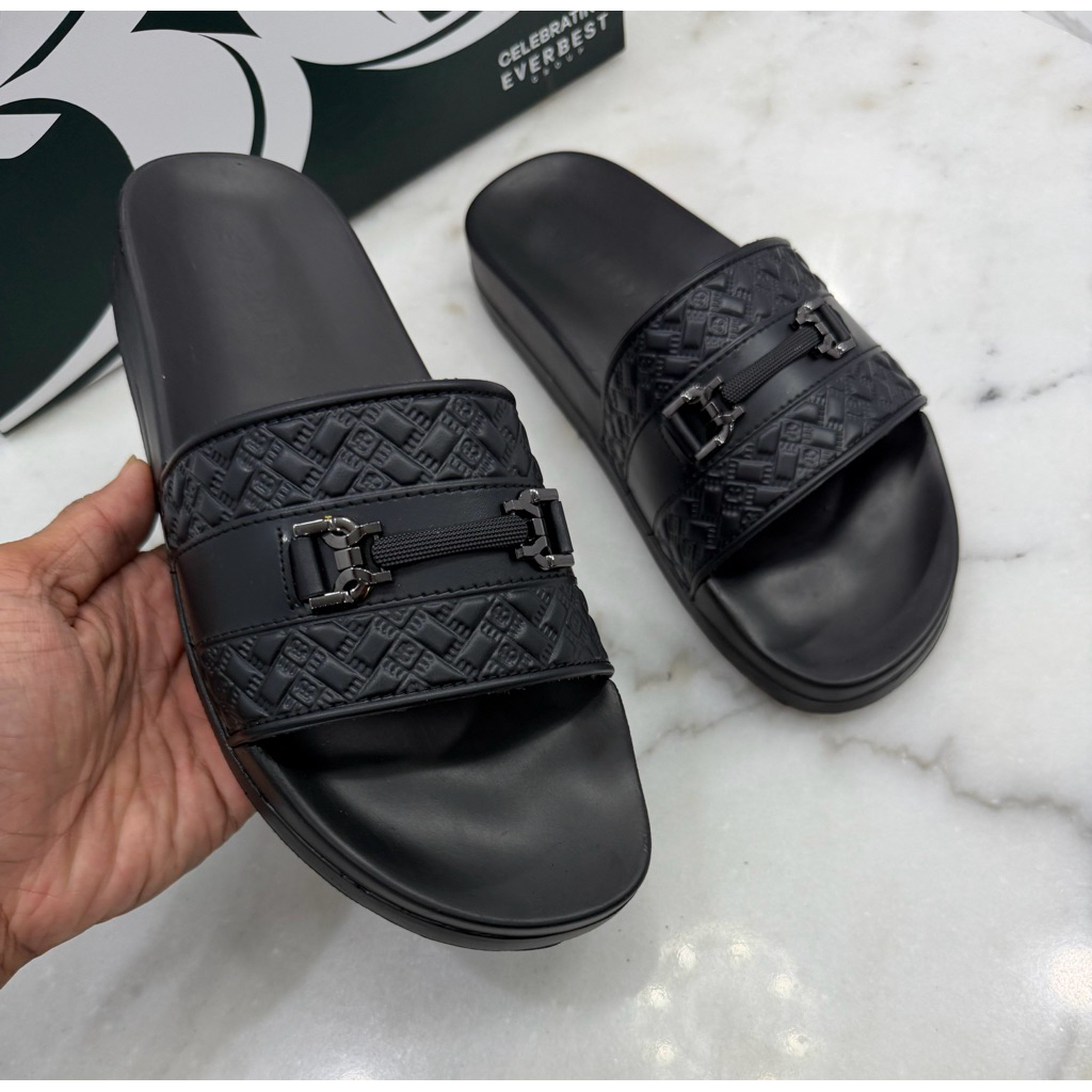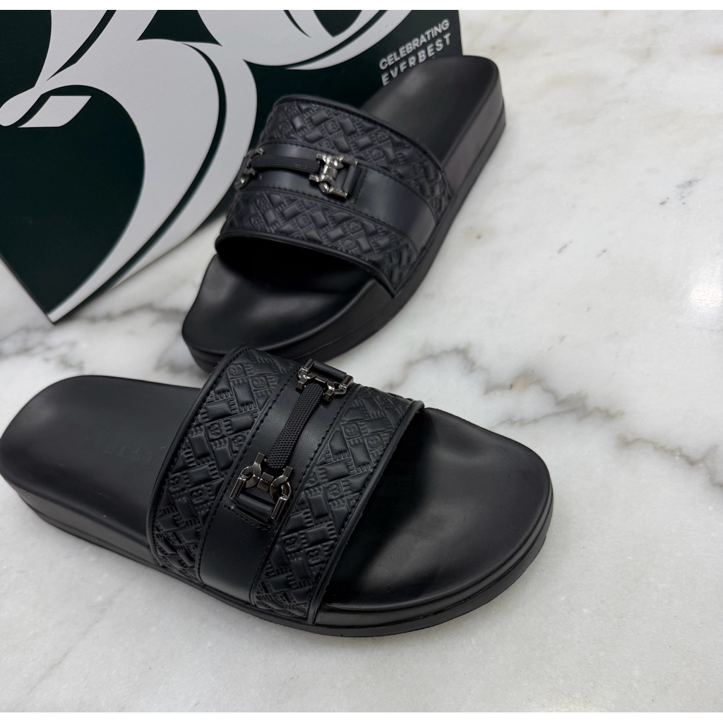 sandal slip on miror premium leter logo besi hitam polos+fre boxs