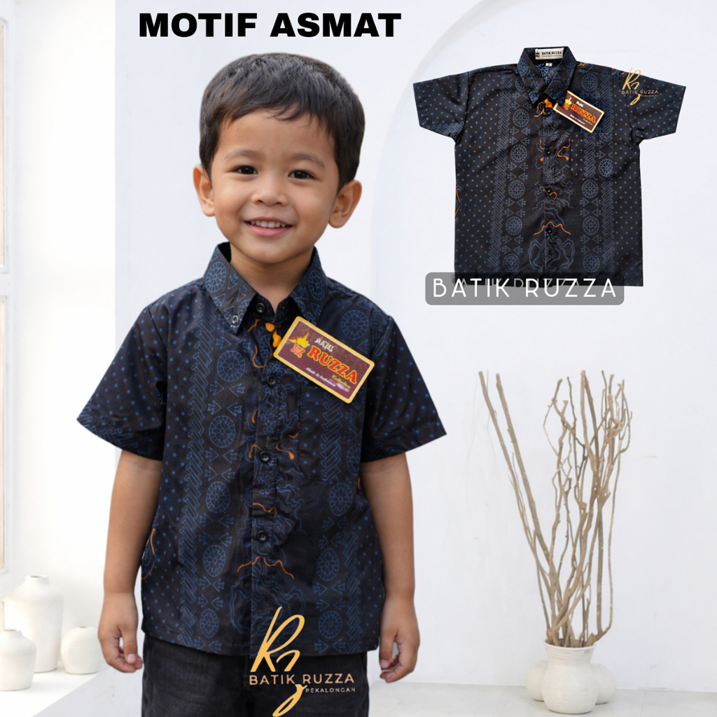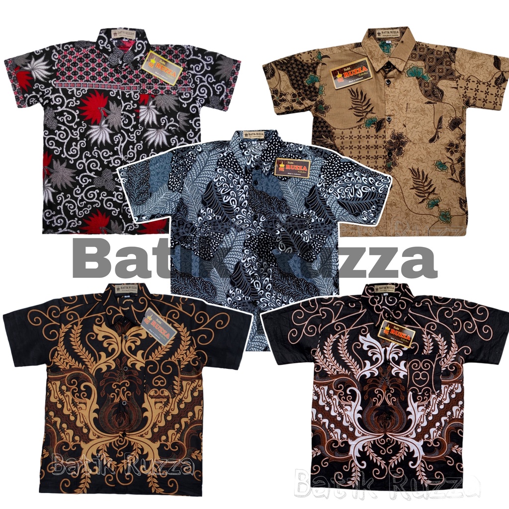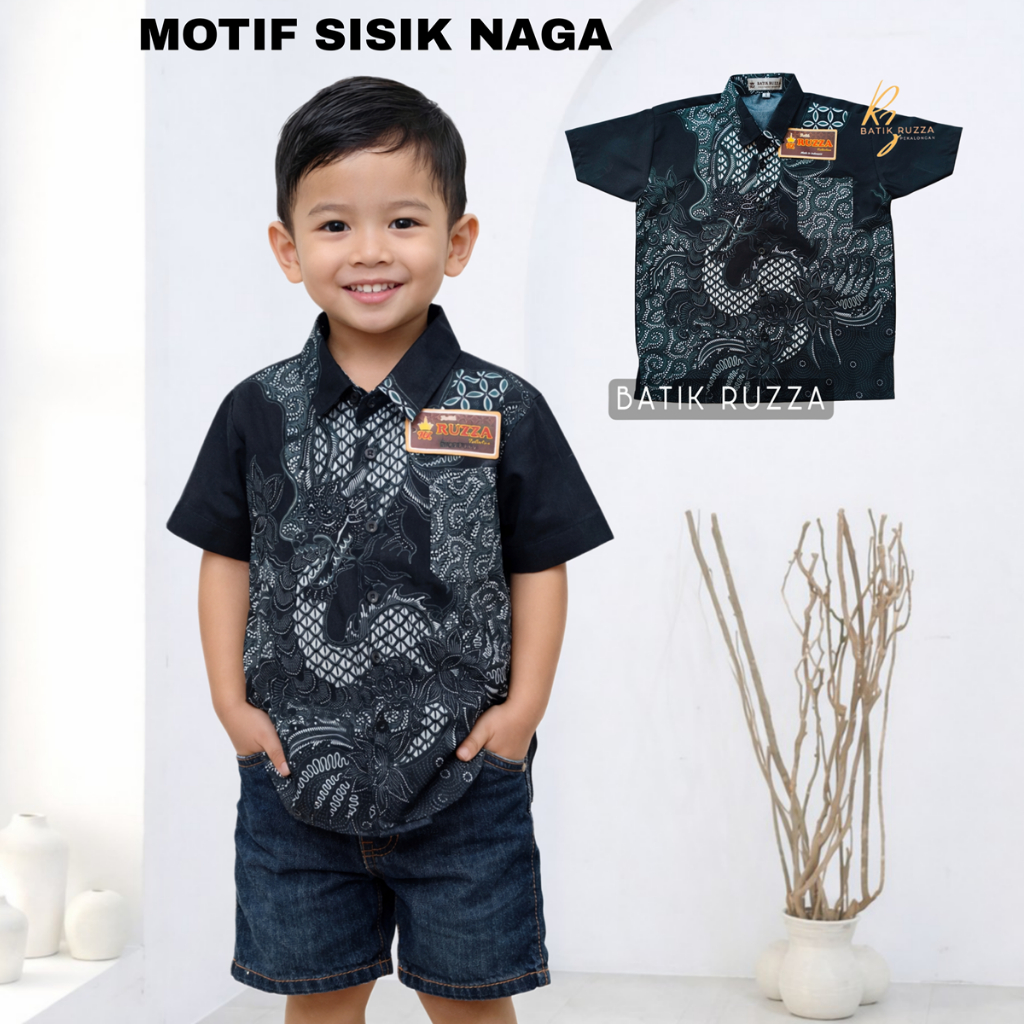 RUZZA BATIK ANAK UKURAN 0-15 TAHUN KEMEJA MOTIF KEMBANG LANGIT HITAM MANGGAR SOGAN CIREBON