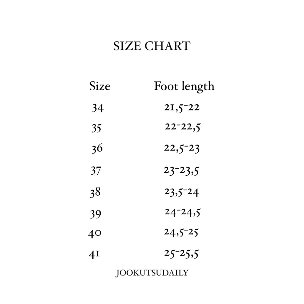 35=22-22,5, 36=22,5-23, 37=23-23,5, 38=23,5-24, 39=24-24,5, 41=25-25,5, 40=24,5-25, 42=25,5-26