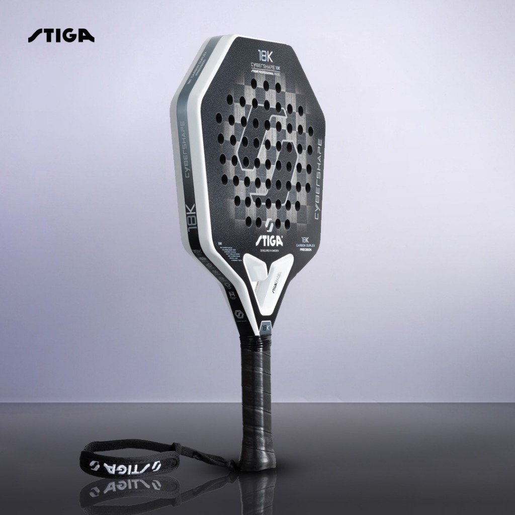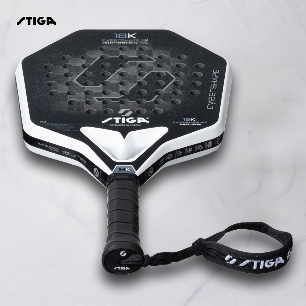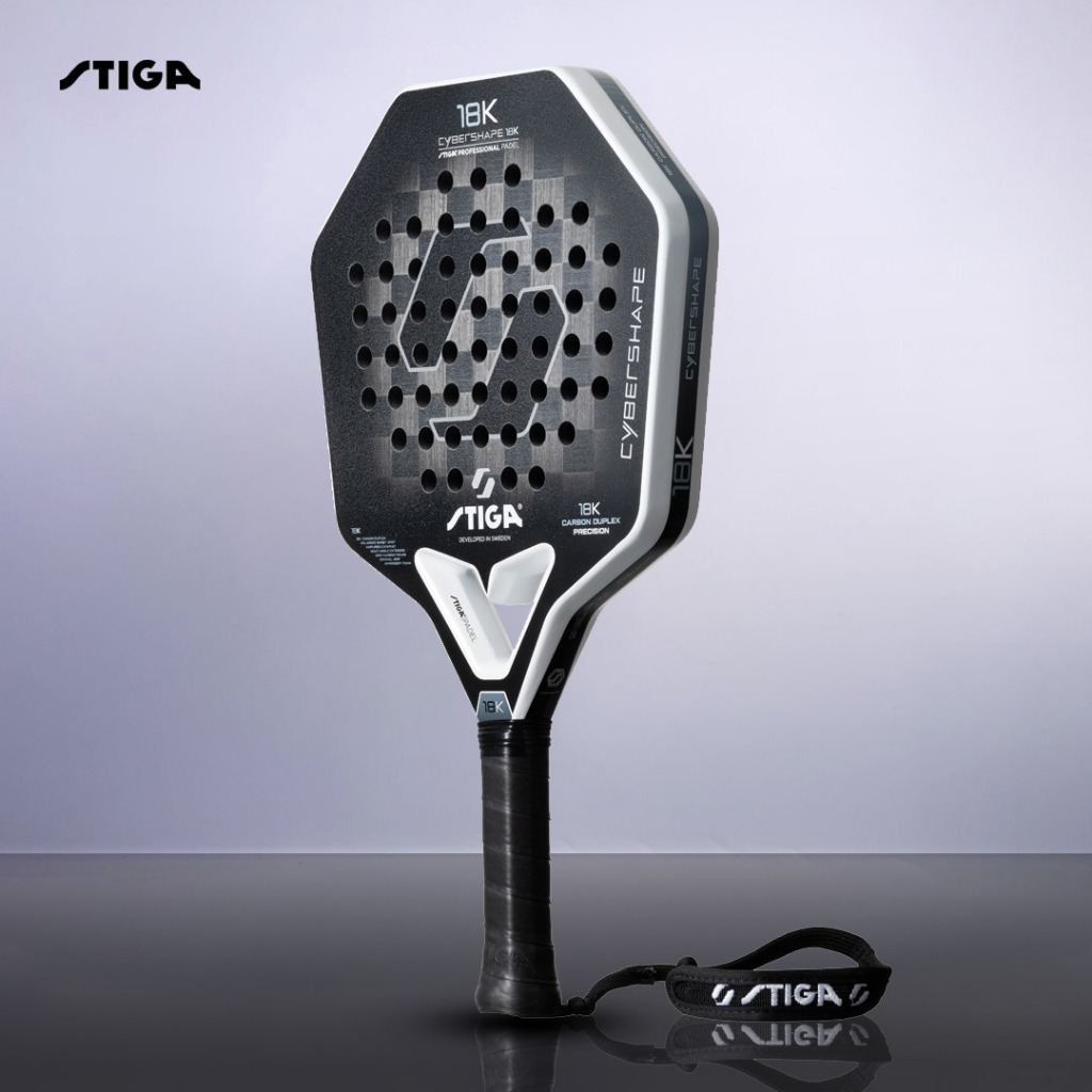 Raket Padel Tenis Tennis Stiga Professional Padel Cybershape 18K Carbon Duplex Precision Black White