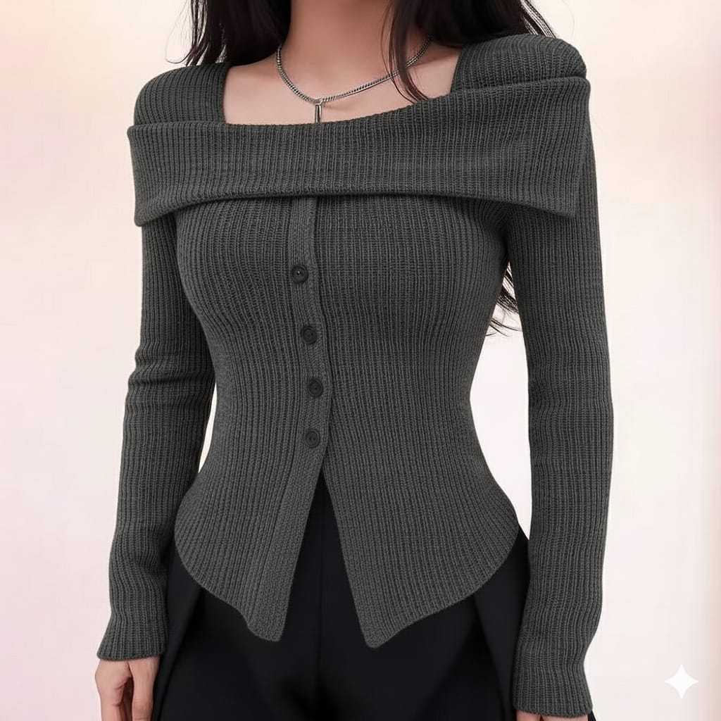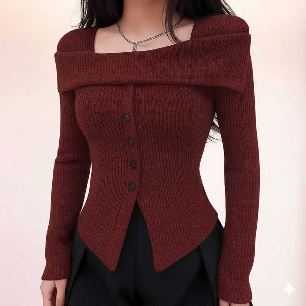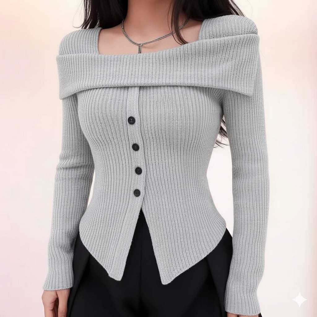 sabrina top kancing elegan atasan polos knite rib panjang Top Knitwear Korean Style
