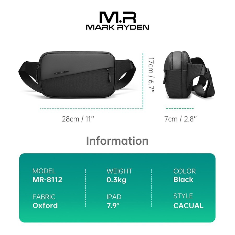 MR8112 Tas Selempang MARK RYDEN Sling Bag Pria Cowok Ipad 7.9 Slim Ringan