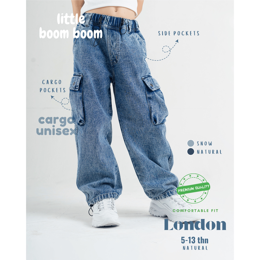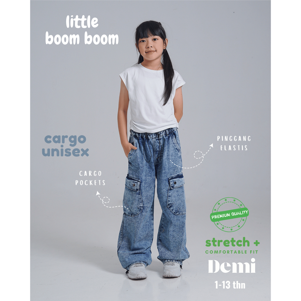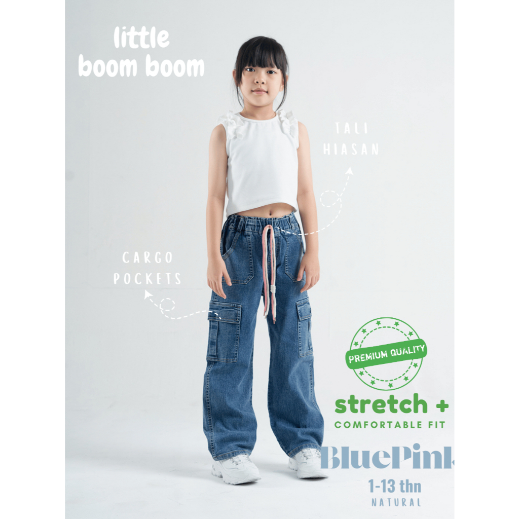 LITTLE BOOM BOOM - Celana Cargo Anak Perempuan Jeans Import Quality 1-13 Tahun