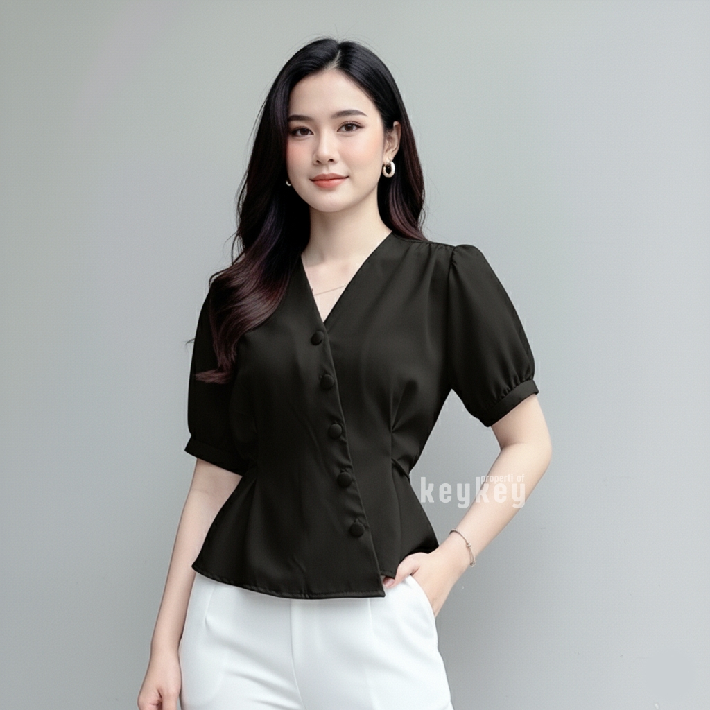 ROLITA | Blouse Atasan Wanita Wolfis Premium Asimetris Elegan | Blouse Wanita Kekinian Fit to L