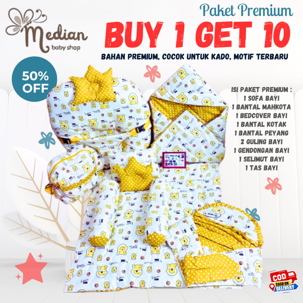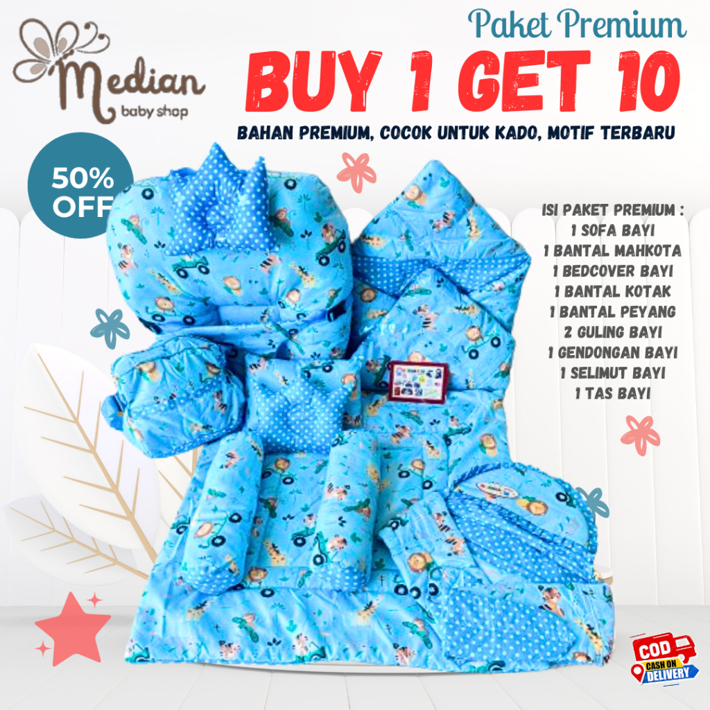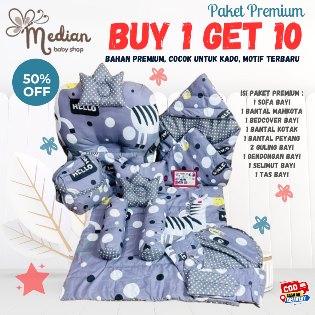 PAKET PREMIUM BUY 1 GET 10 SOFA BAYI/ BEDCOVER/ MATRAS BAYI/ SELIMU TOPI/ GENDONGAN SAMPING/TAS BAYI