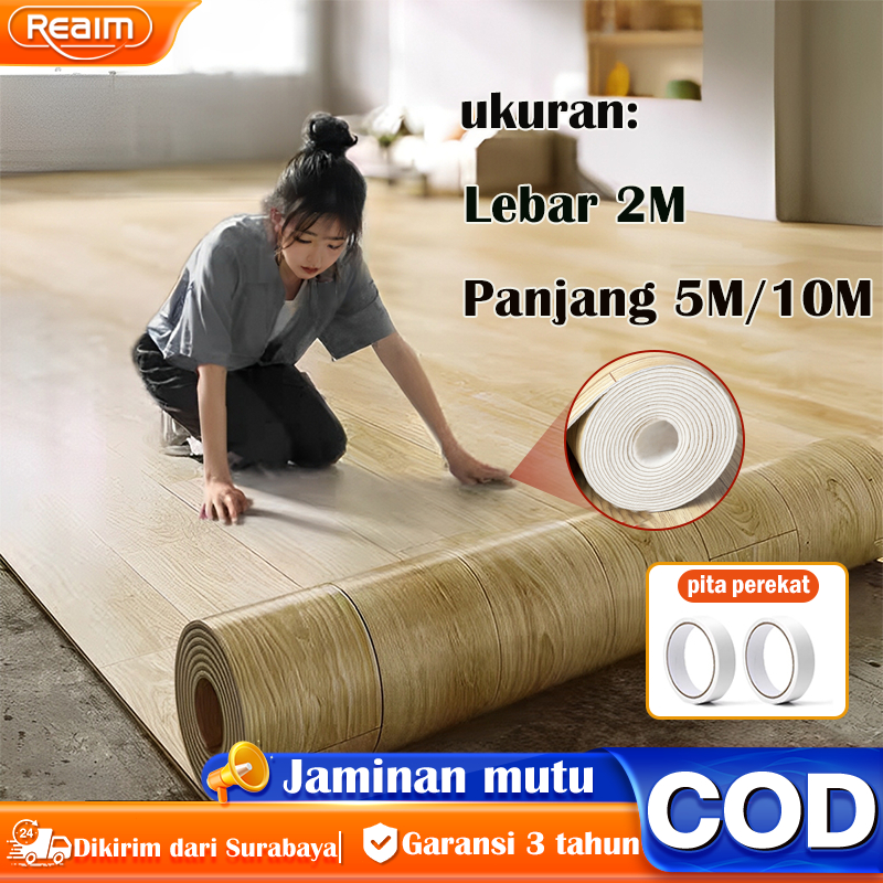 REAIM Karpet Lantai Vinyl Roll Gulungan Tebal 1.5mm Motif Kayu Aesthetic Ukuran 2Mx5M/10M Waterproof Anti Slip Dekorasi