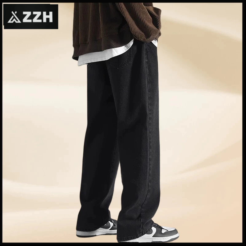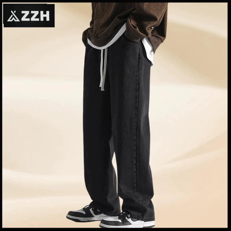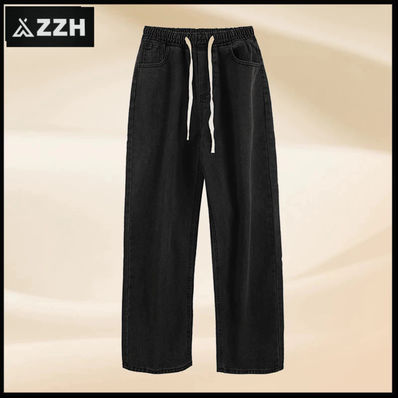 Celana jeans pria hitam jeans pinggang karet baggy pants korean style celana pria panjang M-3XL