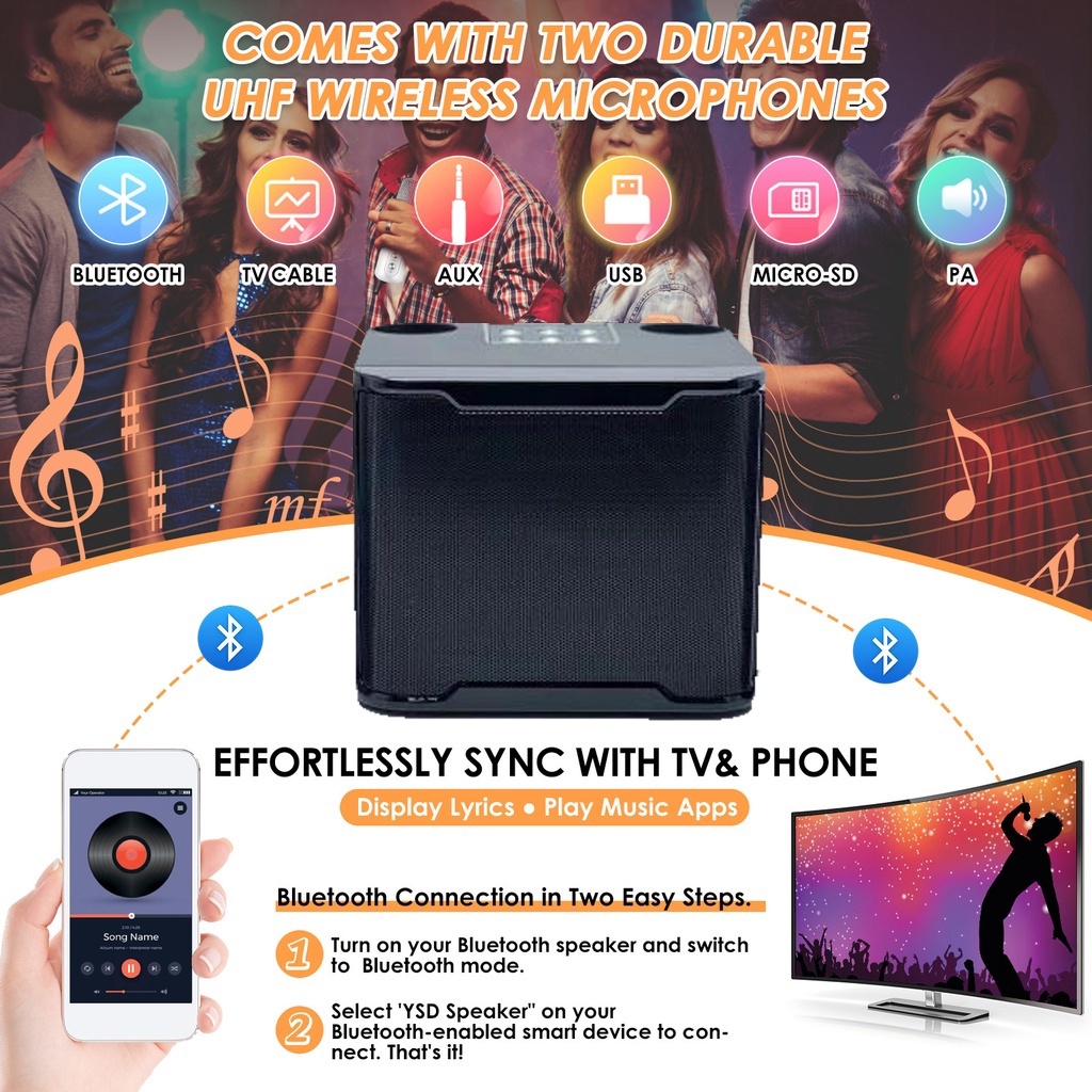 E-Home KARAOKE Bluetooth Speaker Wireless 2 MIC TV AUX SPEAKER HF Bluetooth KTV Equipment 3D Stereo Microphone For Famil