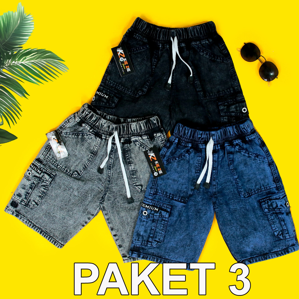 PROMO 3 PCS 100rb celana cargo pendek jins anak usia 1-12 tahun kain jin halus lwmbut warna snow