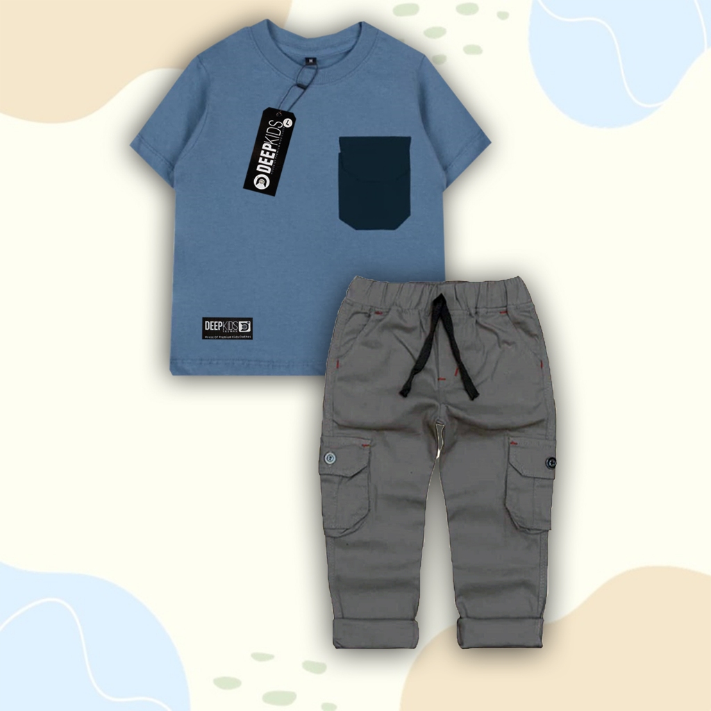 Setelan Anak Laki Laki Kaos Polos Saku & Celana Cargo Panjang Premium Usia 1-12 Tahun | Set KP1 Cargo Pjg