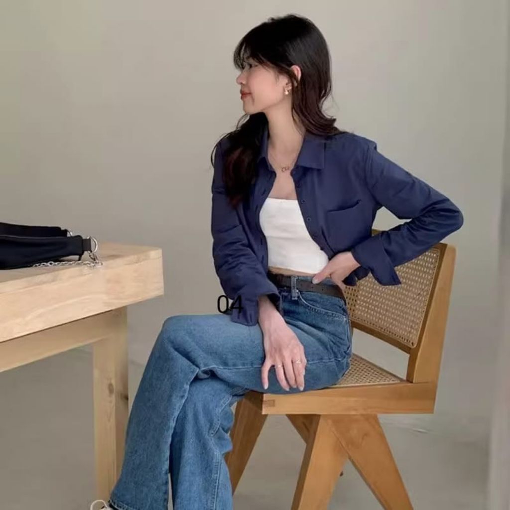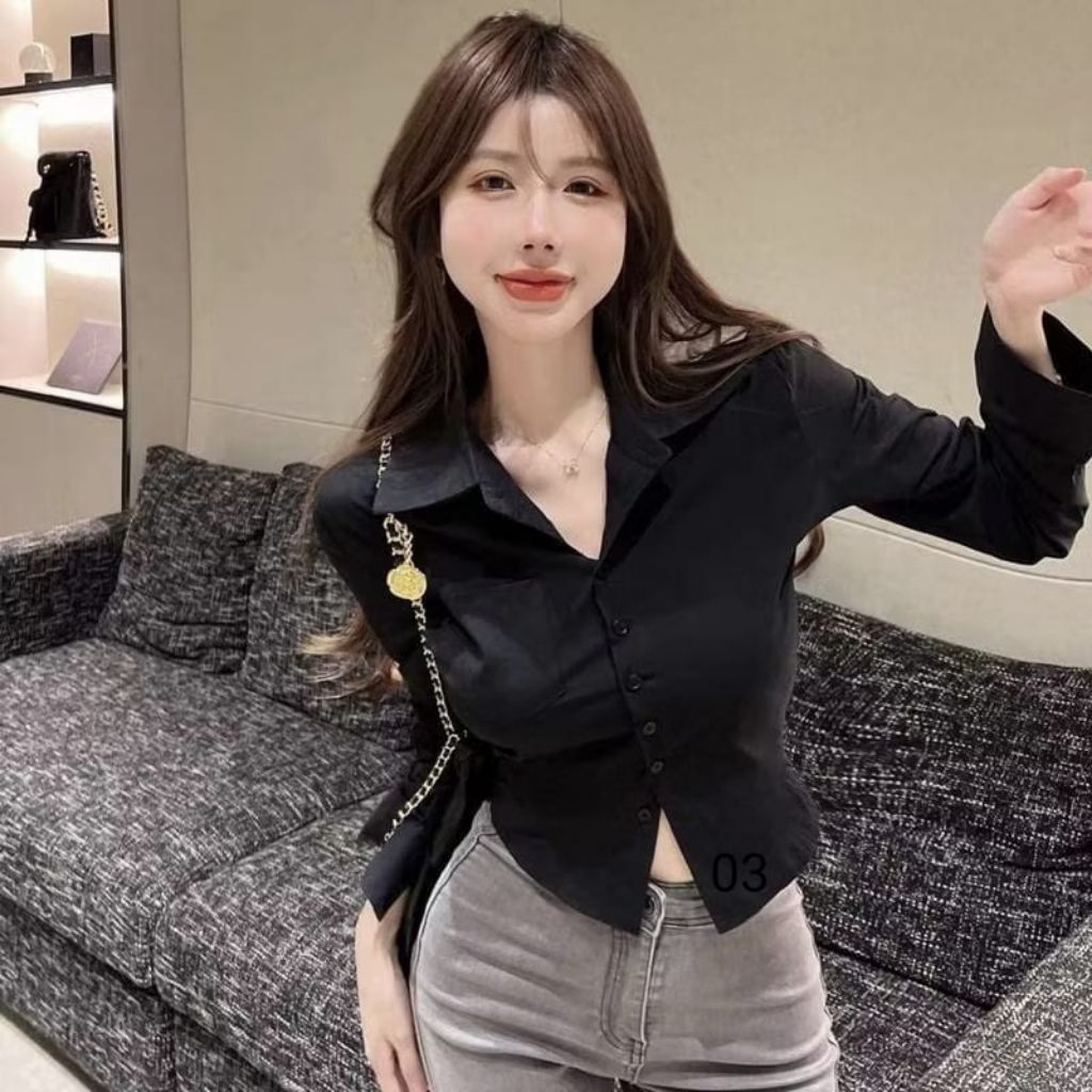 Kemeja Wanita Crop Top Lengan Panjang Korean Style Slimfit S M L XL XXL XXXL