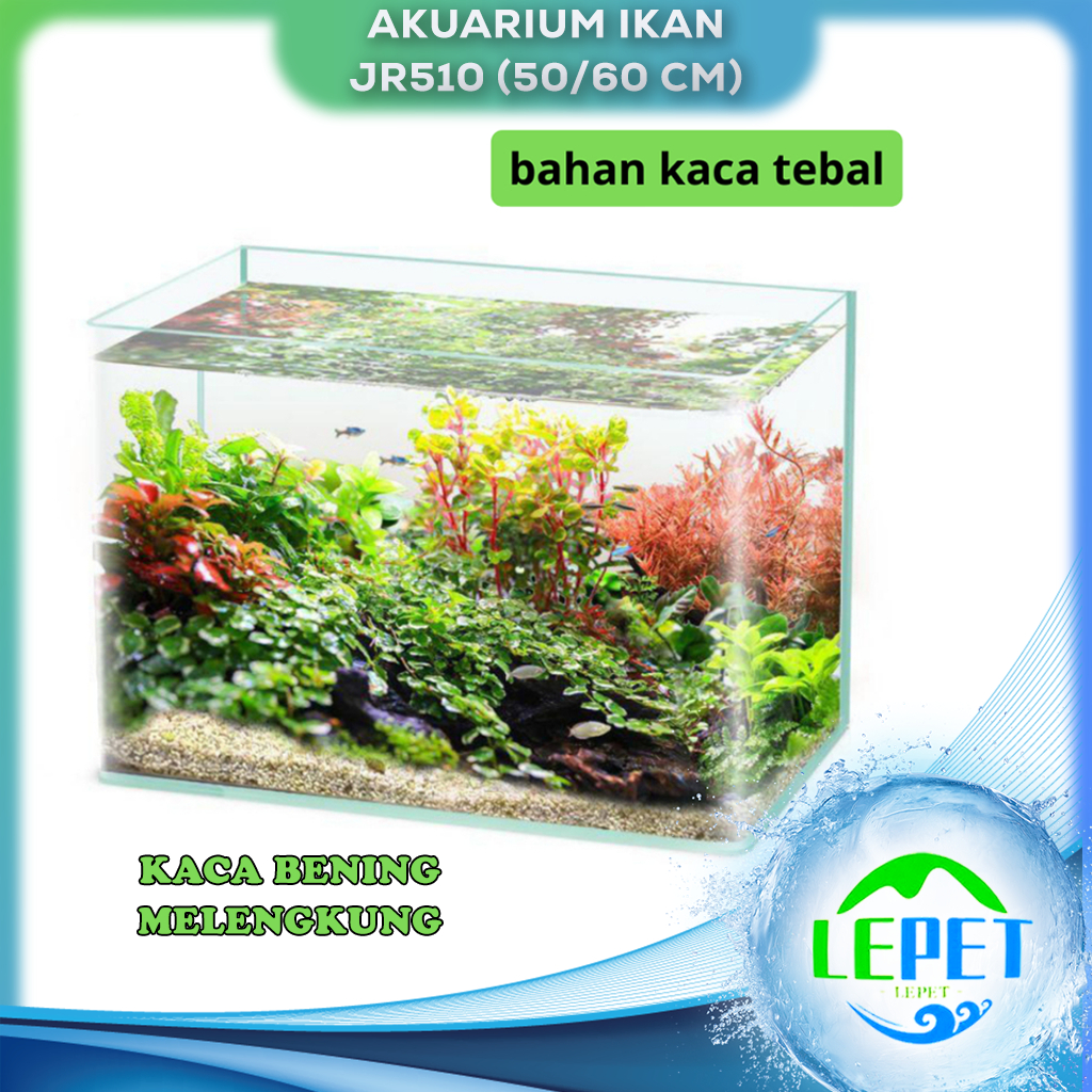 LEPET Akuarium Ikan Jr510 (50/60 cm) Tangki Ikan Mini dengan bahan kaca bening melengkung
