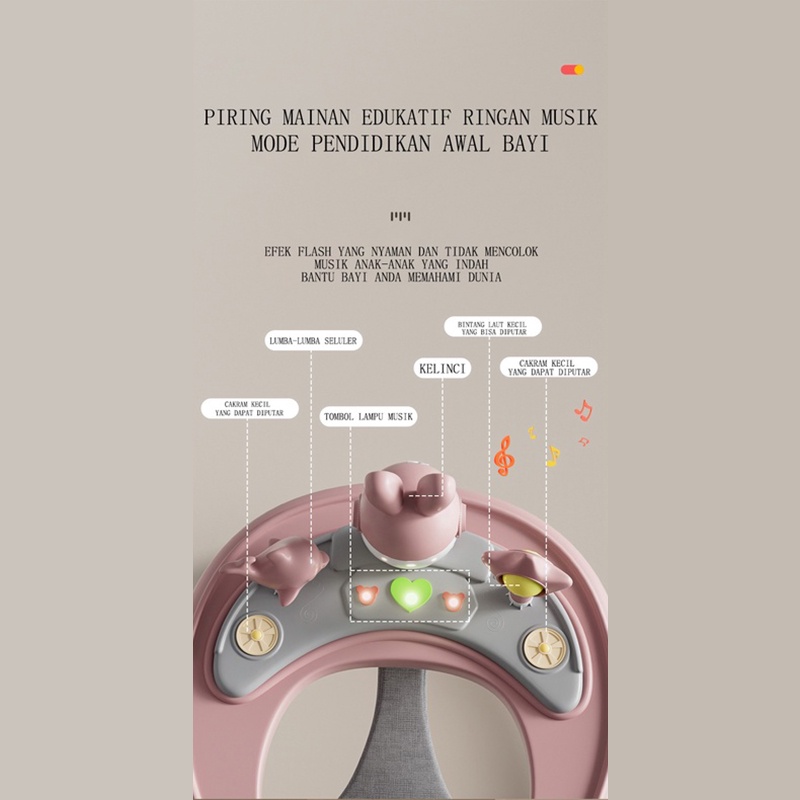 Mmflight Baby Walker Lipat Mainan Musik Walker Alat Bantu Jalan Bayi