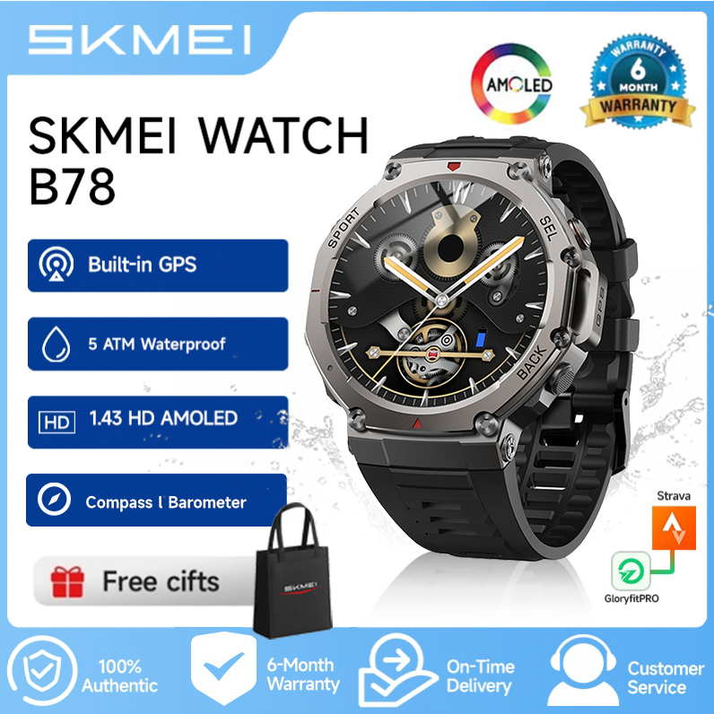 SKMEI B78 GPS Smart watch 5 ATM Waterproof/Built-in GPS/1.43AMOLED Screen 170+ Sports Modes Compass and Barometer smart