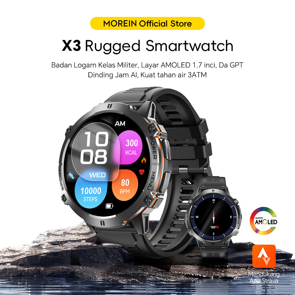 Morein Rock X3 Smartwatch 1.72" AMOLED Bluetooth 5.3 1000mAh Battery Waterproof 1ATM Compas Altimeter AI Watch