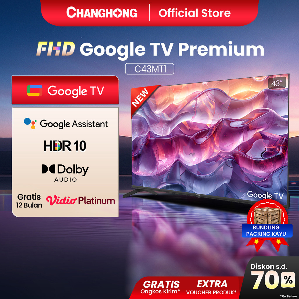 NEW CHiQ GOOGLE TV 43 inch FHD Smart Digital TV Dolby Audio DBX-TV Netflix Youtube VIDIO - C43MT1