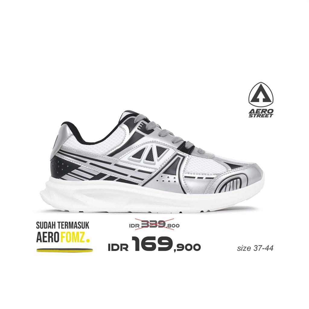 Aerostreet 37-44 Riven Putih Hitam Abu - Sepatu Sneakers Casual
