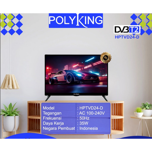 POLYKING 24E LED TV-Siap Digital-Tanpa STB-Full HD-Termurah-Garansi Resmi TV Digital 24 inch-A.TV Tanpa Set Top Box.TV Monitor.Polyking.DVB-T2.FHD.Garansi Resmi.TV murah.TV Portable.TV Mini HDMI