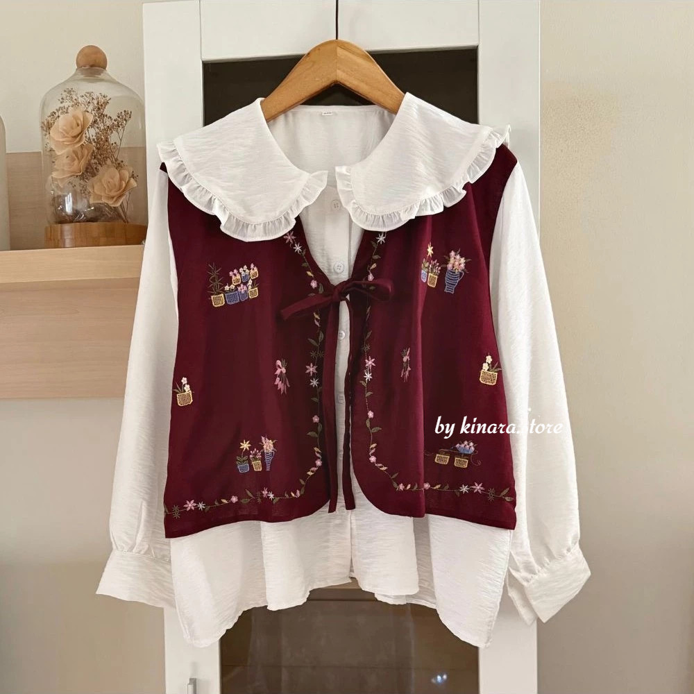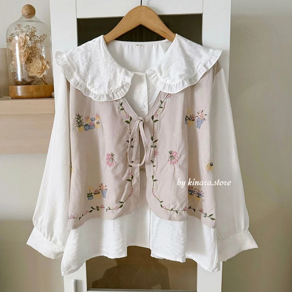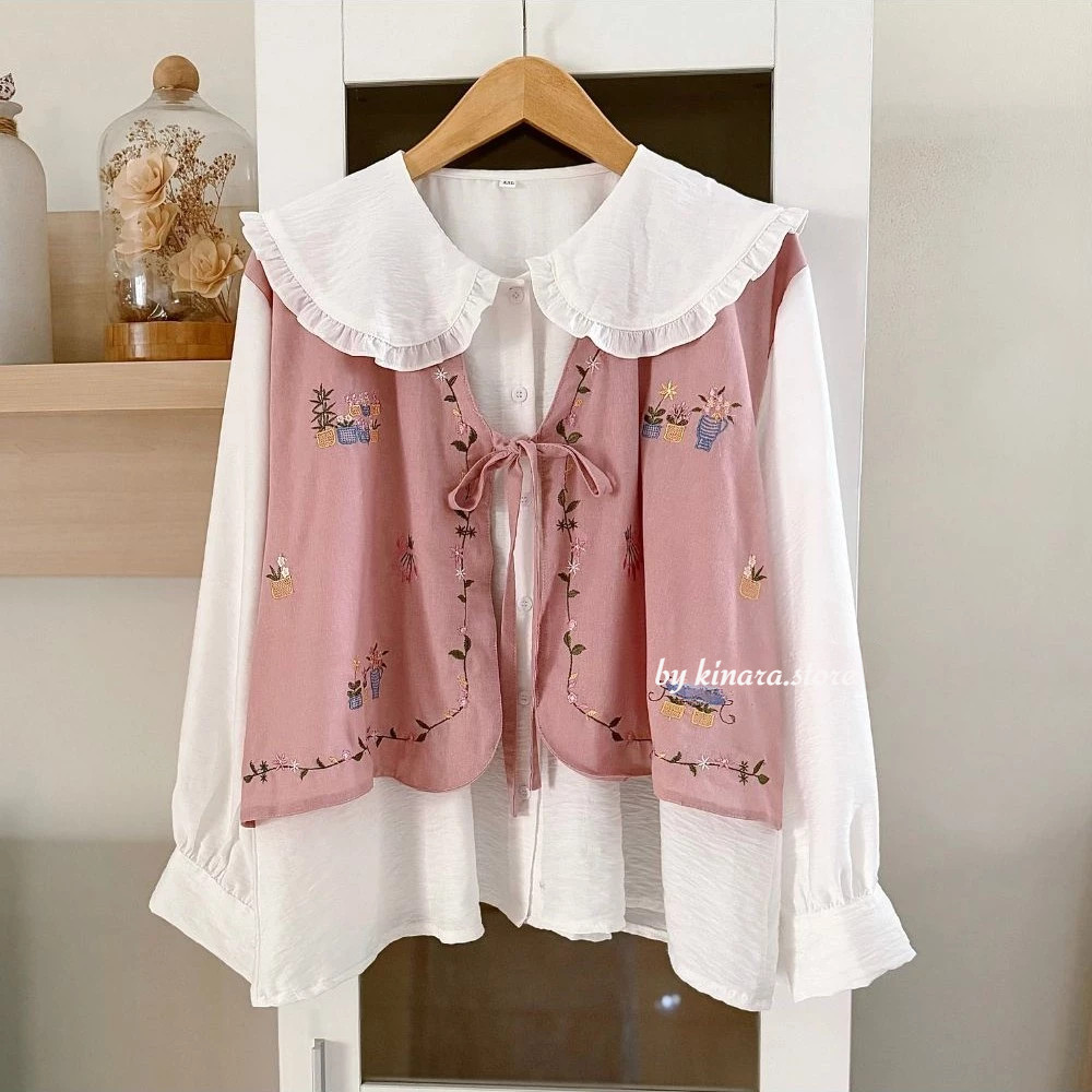 Delphia Blouse | Atasan Bordir Korean Style | LD 120 110 dst | Atasan Wanita Lengan Panjang