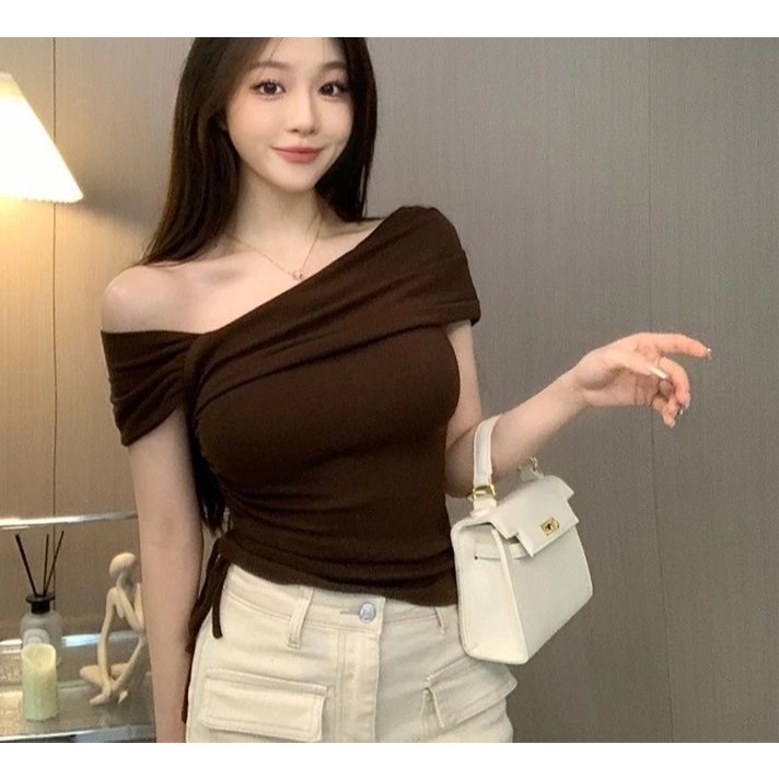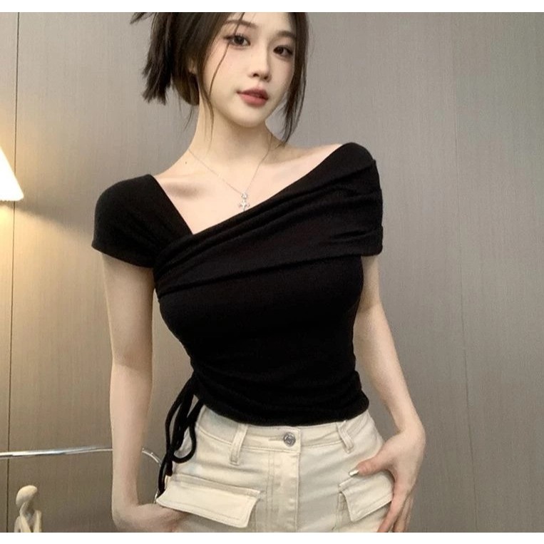 Zollaris y2k baju rib knit lengan pendek T-shirt wanita baju atasan wanita terbaru