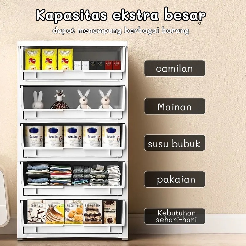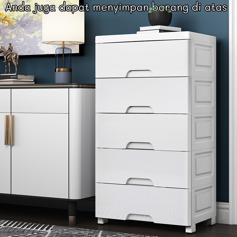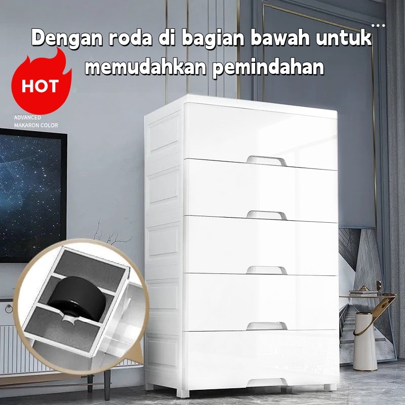 Dengan rodaLoker Plastik Lemari penyimpanan multi-fungsi Lemari Pakaian Anak Susun Drawer Storage Cabinet