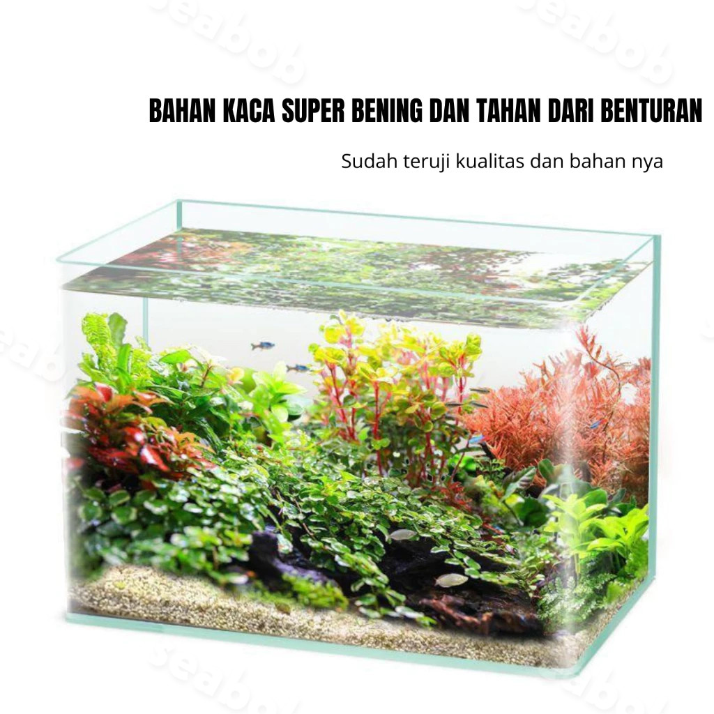 SEABOB Akuarium Ikan SXYYJR513 (30/35/40/50/60 cm) Tangki Ikan Mini dengan bahan kaca super bening melengkung