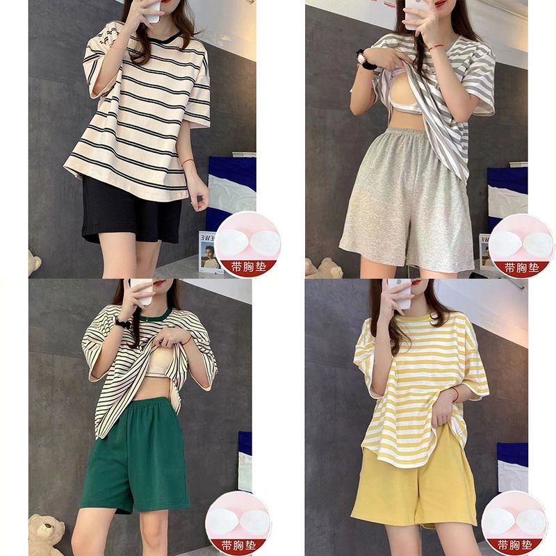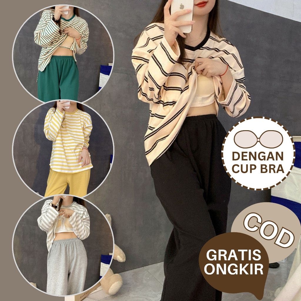 SS 118 Baju Tidur 3in1 Dengan Busa CUP Piyama Import Wanita Baju Rumah 1 Set Lengan Pendek Celana Pendek & Panjang