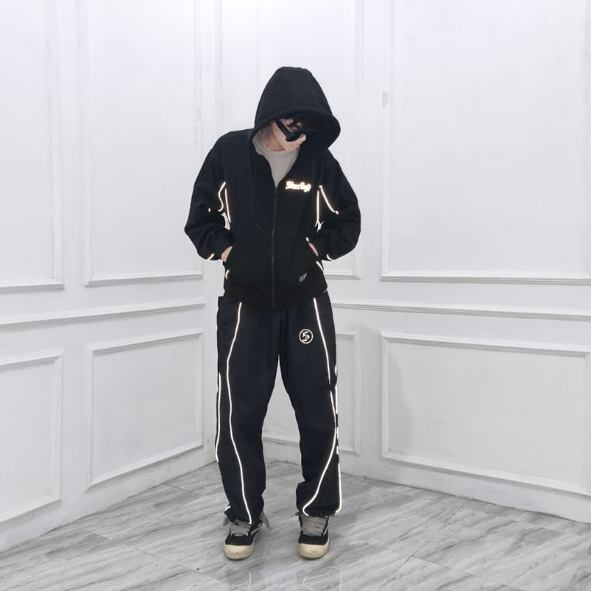 CELANA BAGGY REFLEKTIF LOOSE PANTS STRIPED EDGE STREETWEAR CASUAL