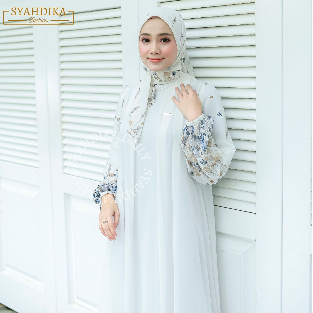 (FREE HIJAB) ZASKIA PUTIH DRESS GAMIS SET JILBAB WANITA KEKINIAN CERUTY BABY DOLL PREMIUM
