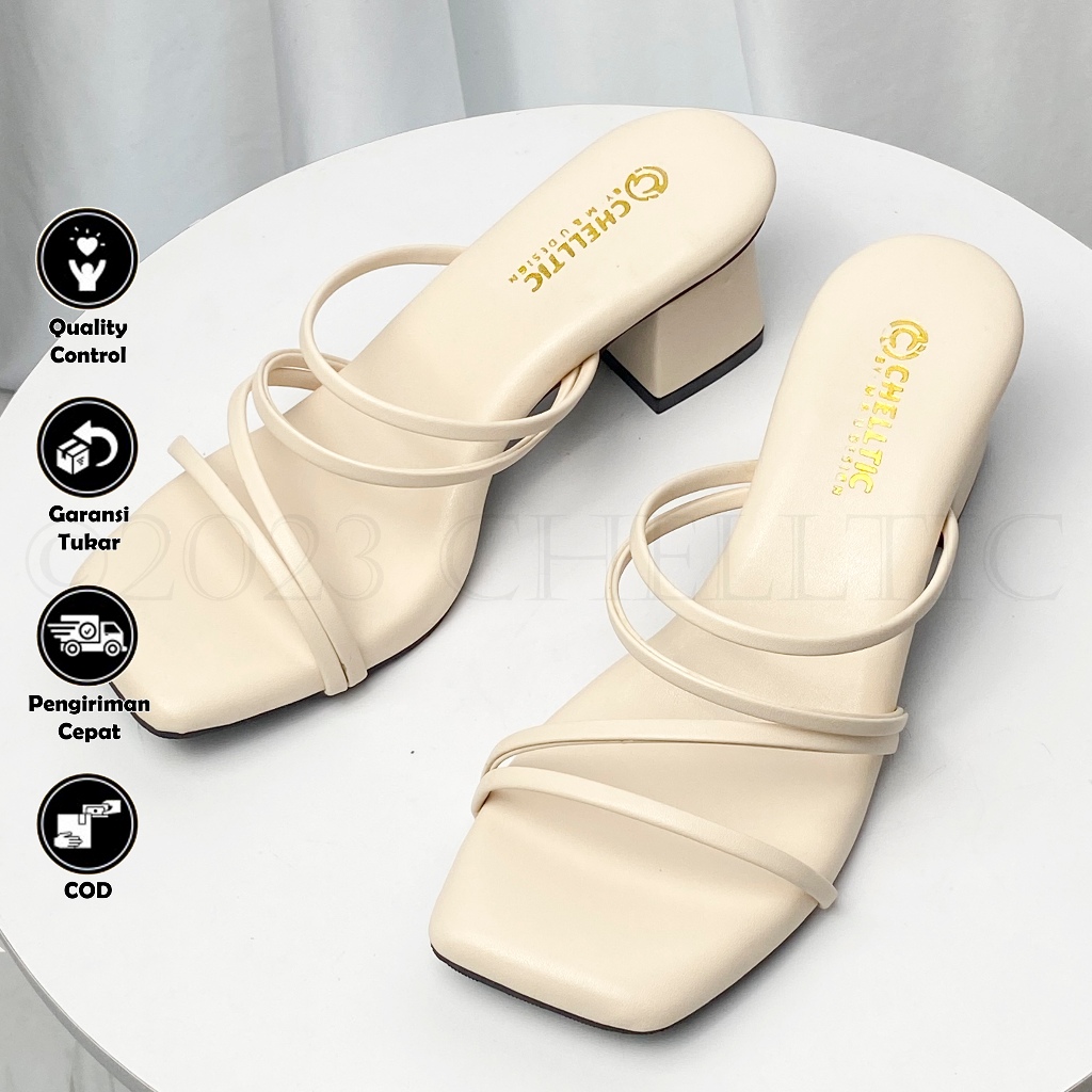 Galaxy Sandal Sepatu Heels Hak Tahu Wanita 5Cm Aksen Tali Busa Puffy Super Empuk Dan Nyaman|Sendal Pesta Perempuan Kekin