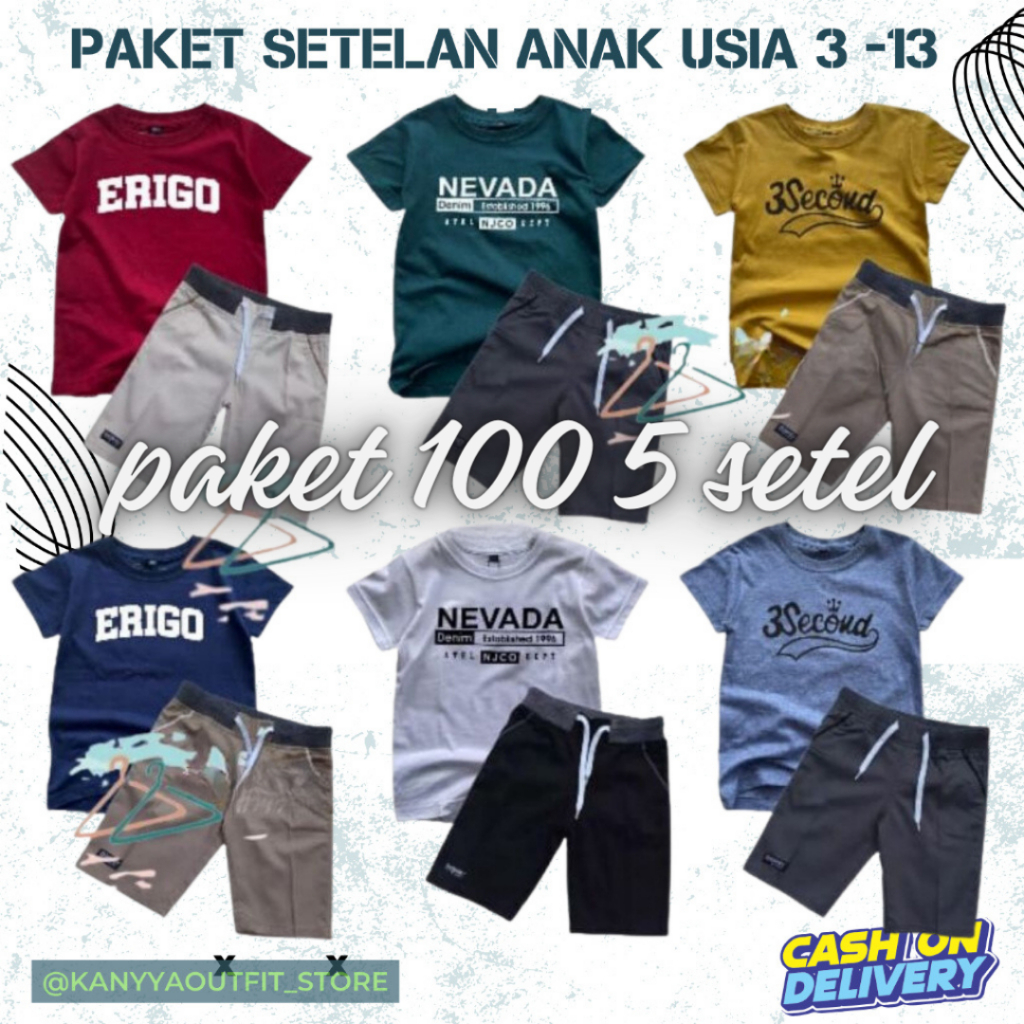 Paket Setelan Anak 5 Set Stelan Kaos Celana Anak Cowok Cewek los Motif Usia 2-12 Tahun