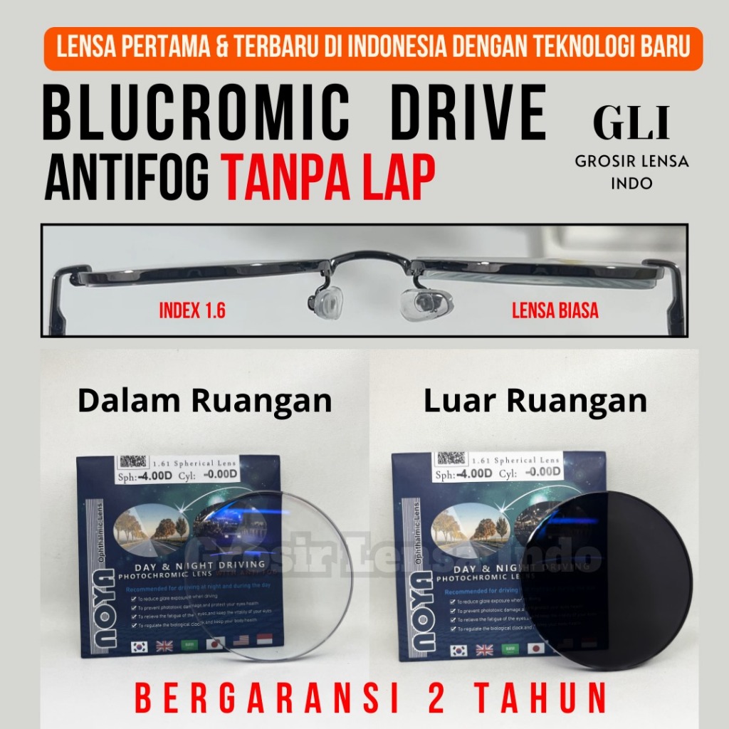 LENSA KACAMATA BLUECROMIC DRIVE ,ANTI BLUERAY ,ANTI EMBUN PHOTOCROMIC NOYA INDEKS 1.6 BERGARANSI