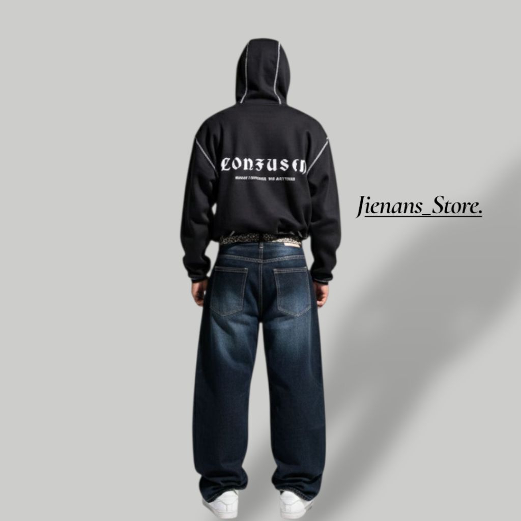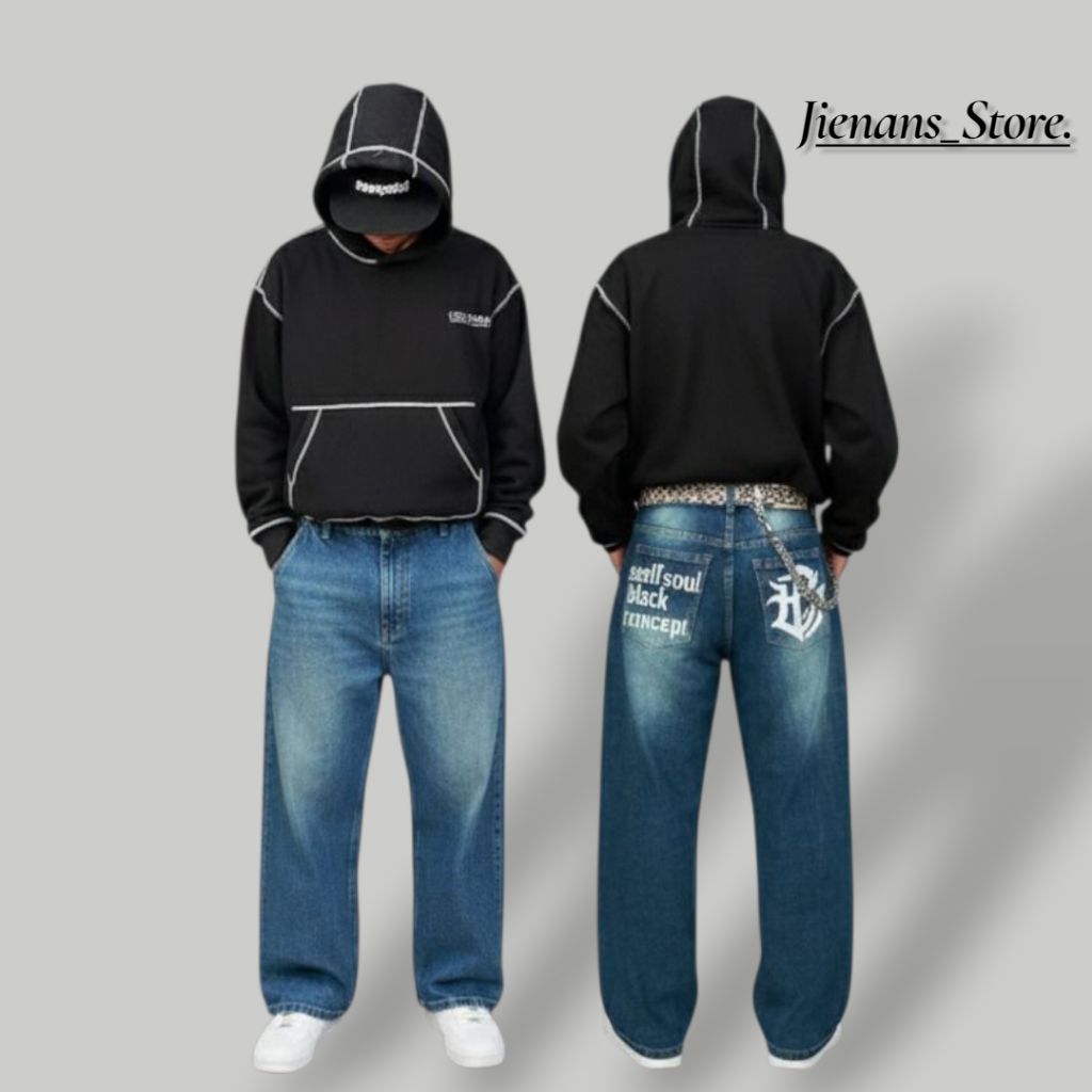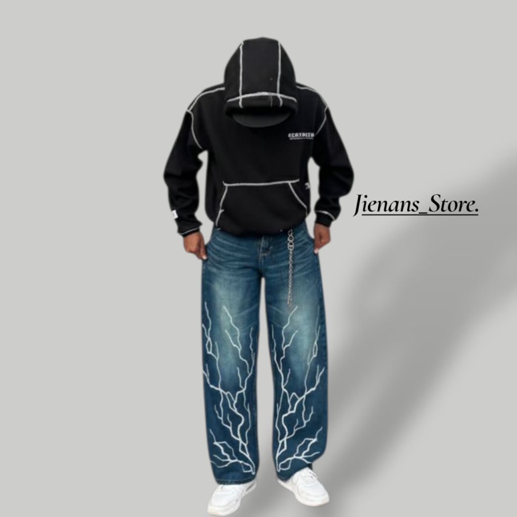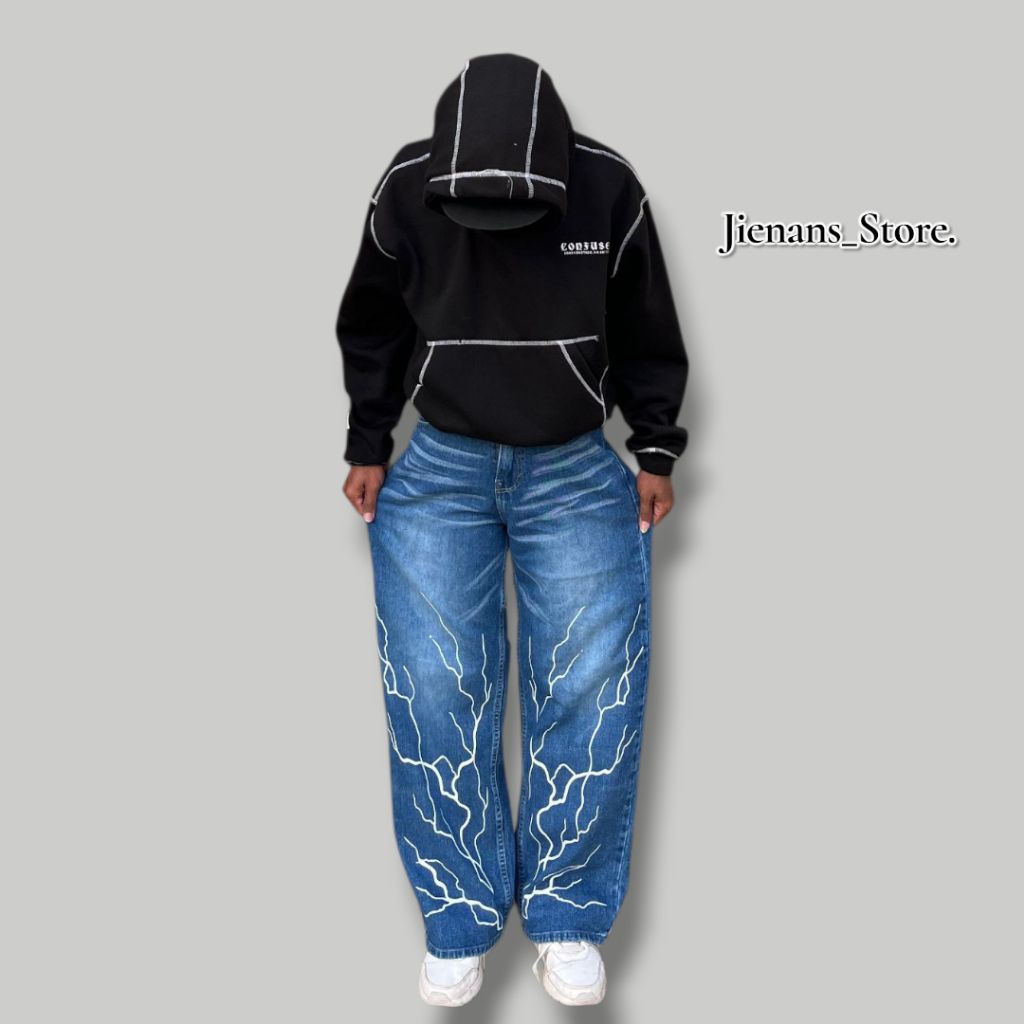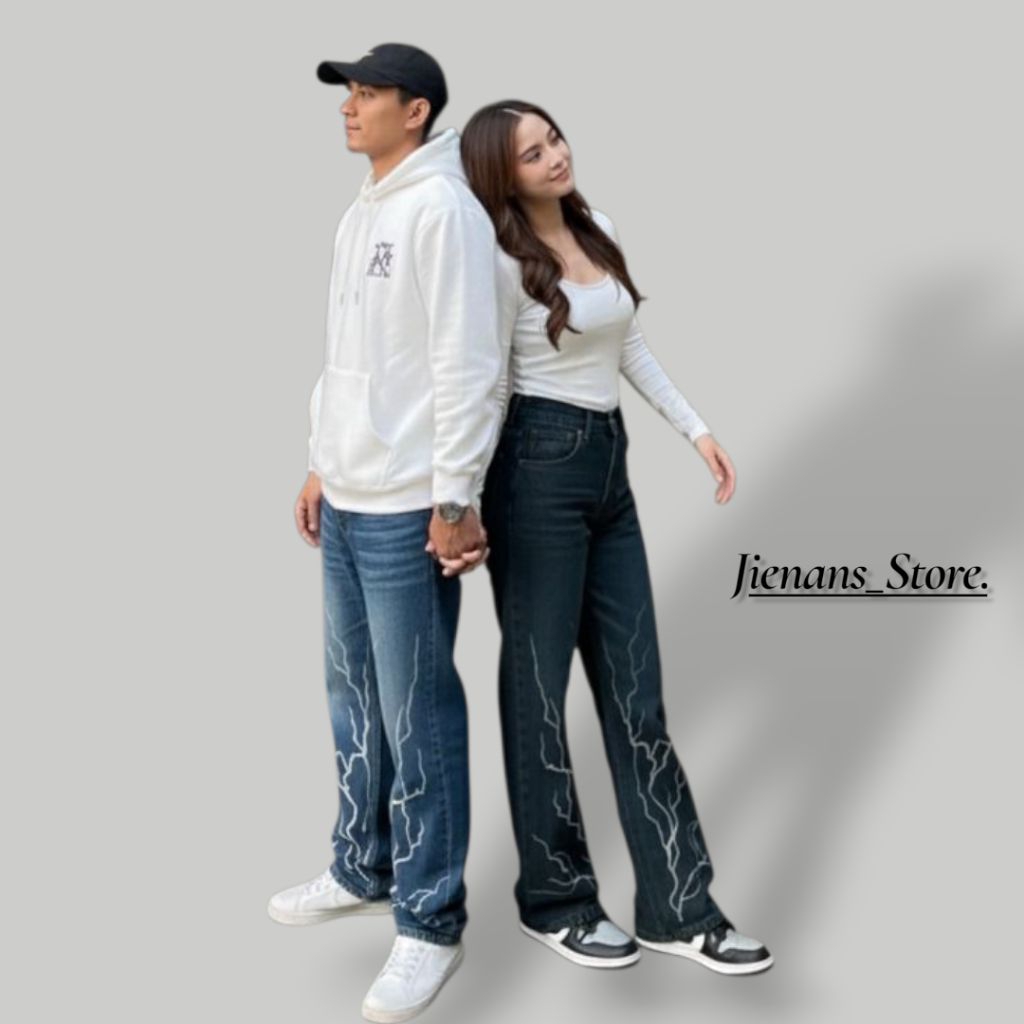 (UNISEX) Celana Jeans Gombrong Baggyjeans Skena Highwaist Celana Jeans Sablon Terbaru Model Petir
