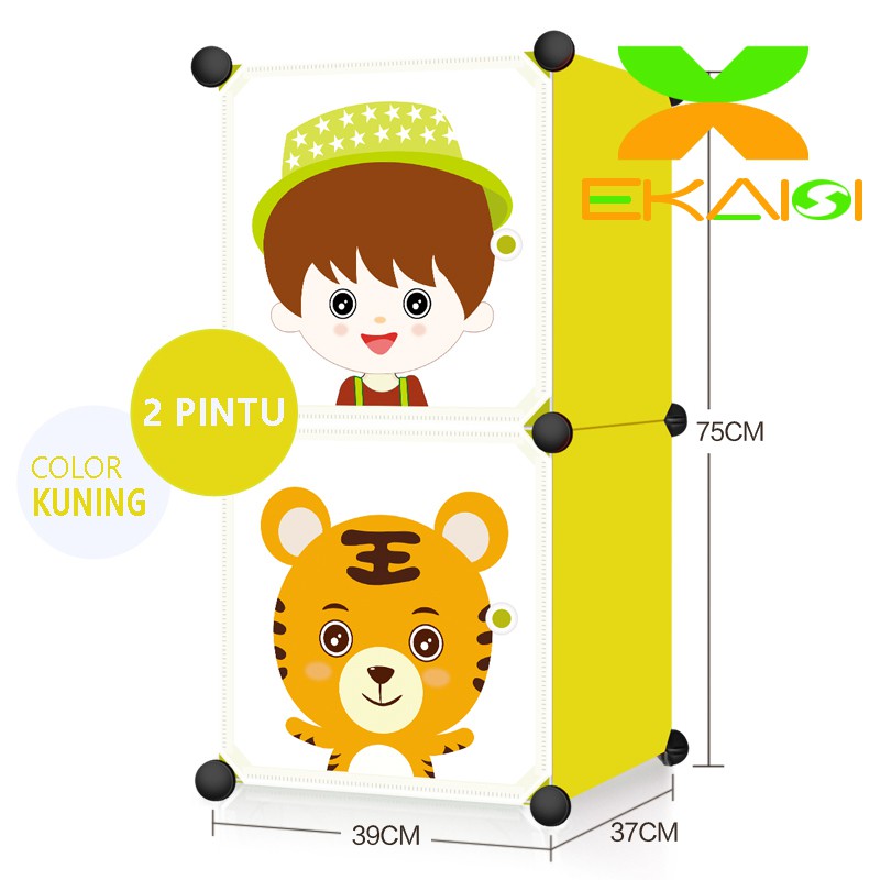 Lemari rtable pakaian rak serbaguna susun plastik lemari baju rak buku 2 pintu/kotak LS