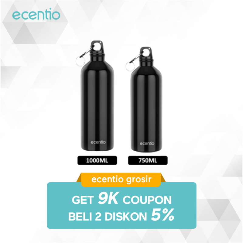 [grosir]ecentio 1000ml Botol Minum 1 liter aluminium Olahraga Botol air/bottle minum sepeda/Cangkir aluminium Dengan Karabiner/Botol Tumbler Olahraga Kantor nti tumpah dan Dingin