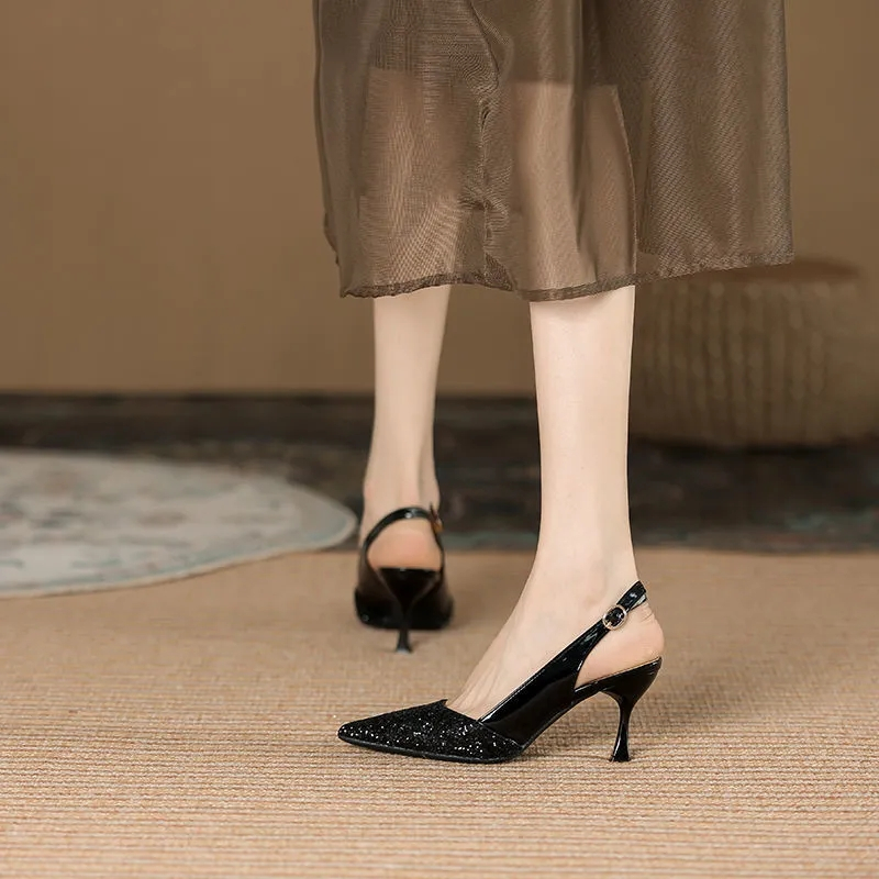Herdian Ajd 03 Sepatu Heels Wanita Hak Runcing Tali Belakang Hak Stilleto 7 Cm