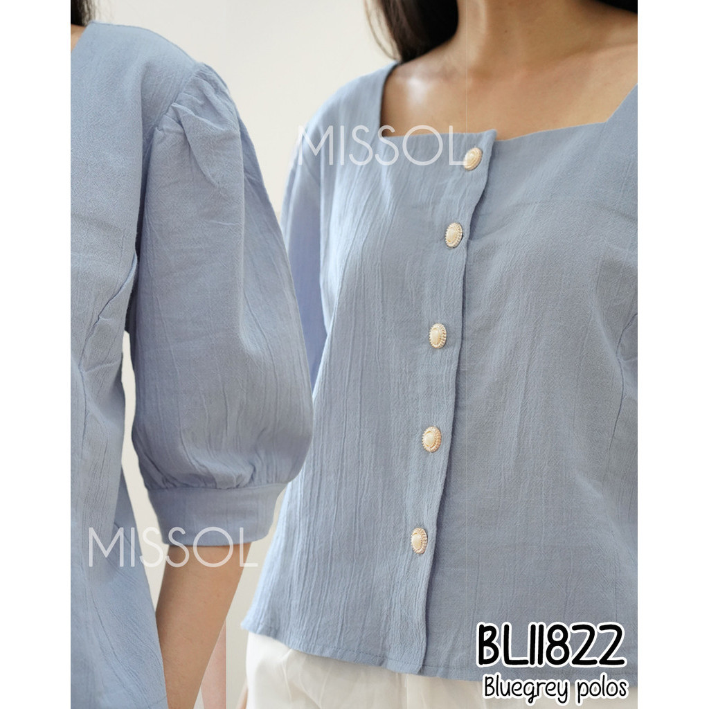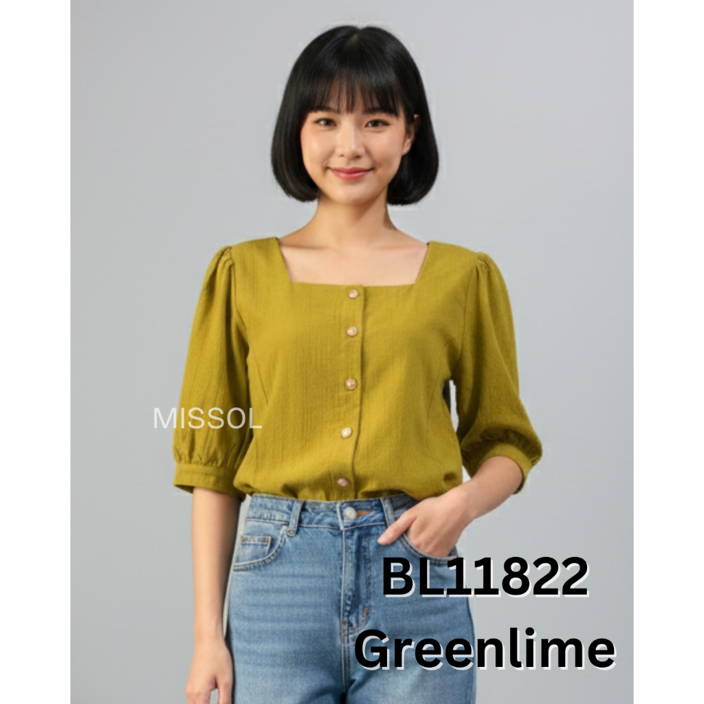 MISSOL Atasan linen wanita polos lengan balon korean style BL11822 11822