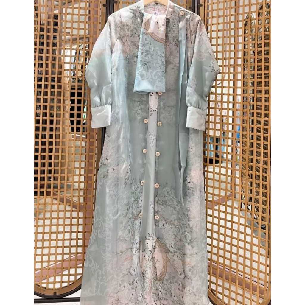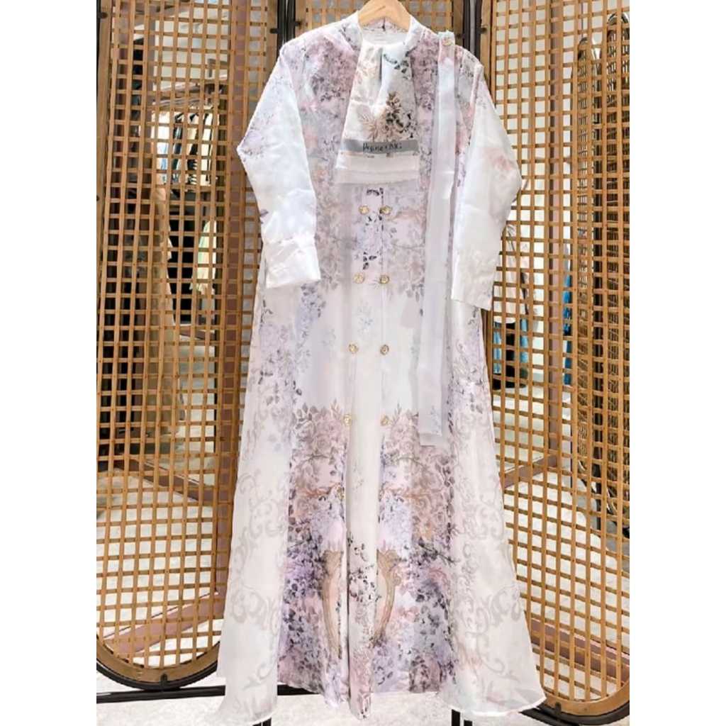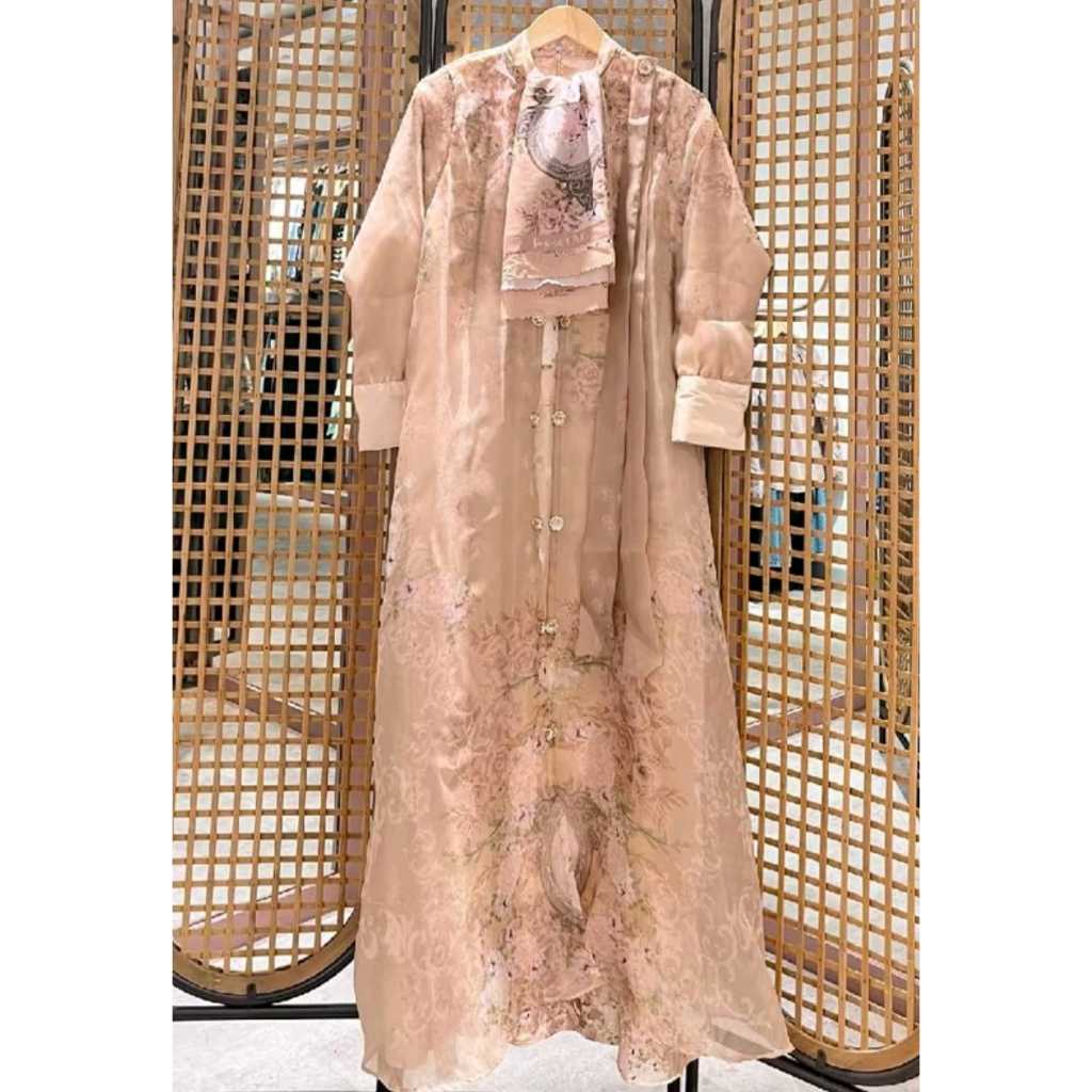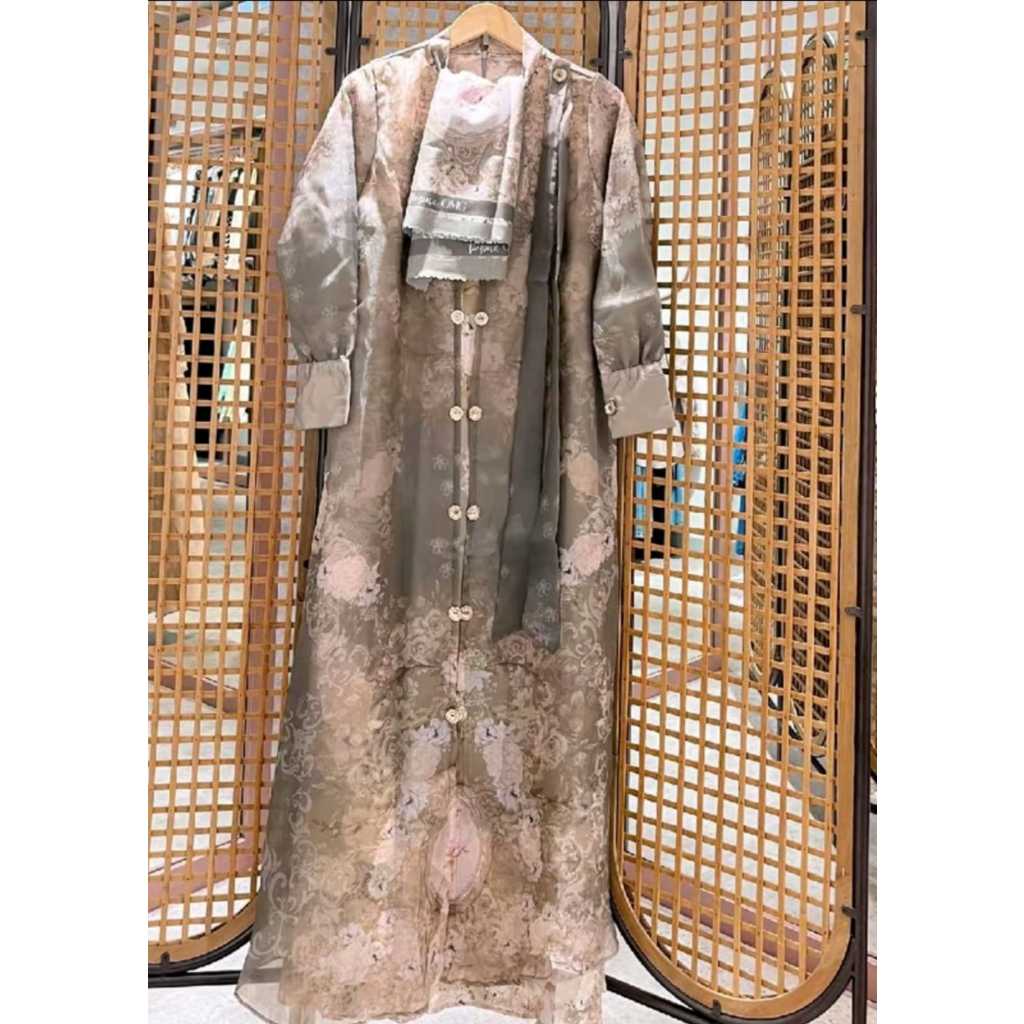 Gamis Syari Set Hijab Bahan Ceruty Premium Import Printing Mix Organza Motif Bunga