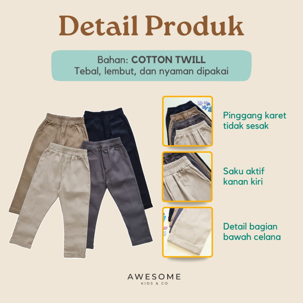 AWESOMEKIDS 12-16th Quincy Chino Remaja Jumbo Teens Celana Panjang Anak Katun Twill Polos